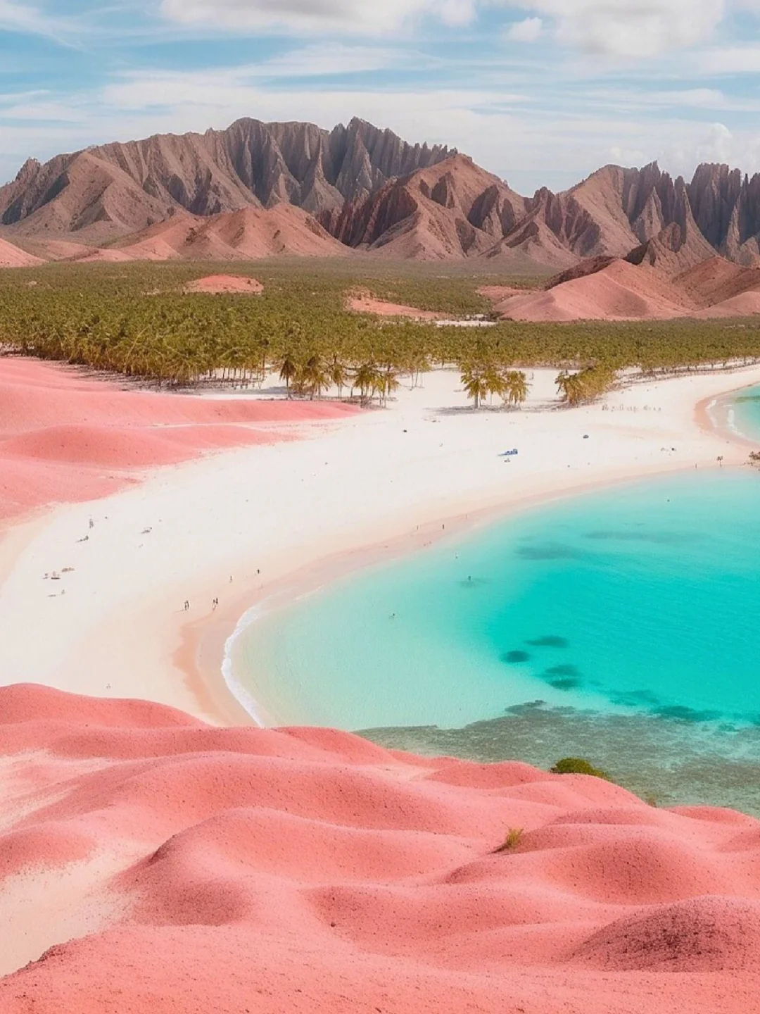 - 粉红海滩:世界上少有的粉红色沙滩之一,由红色珊瑚碎片形成