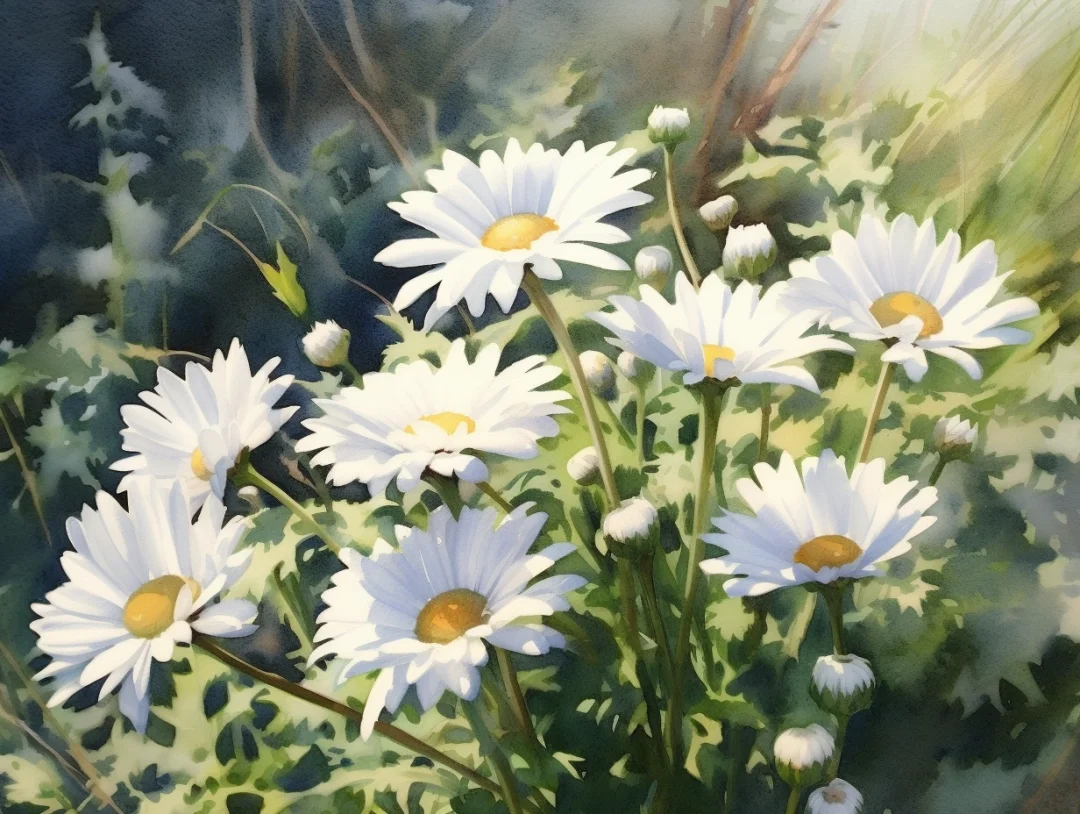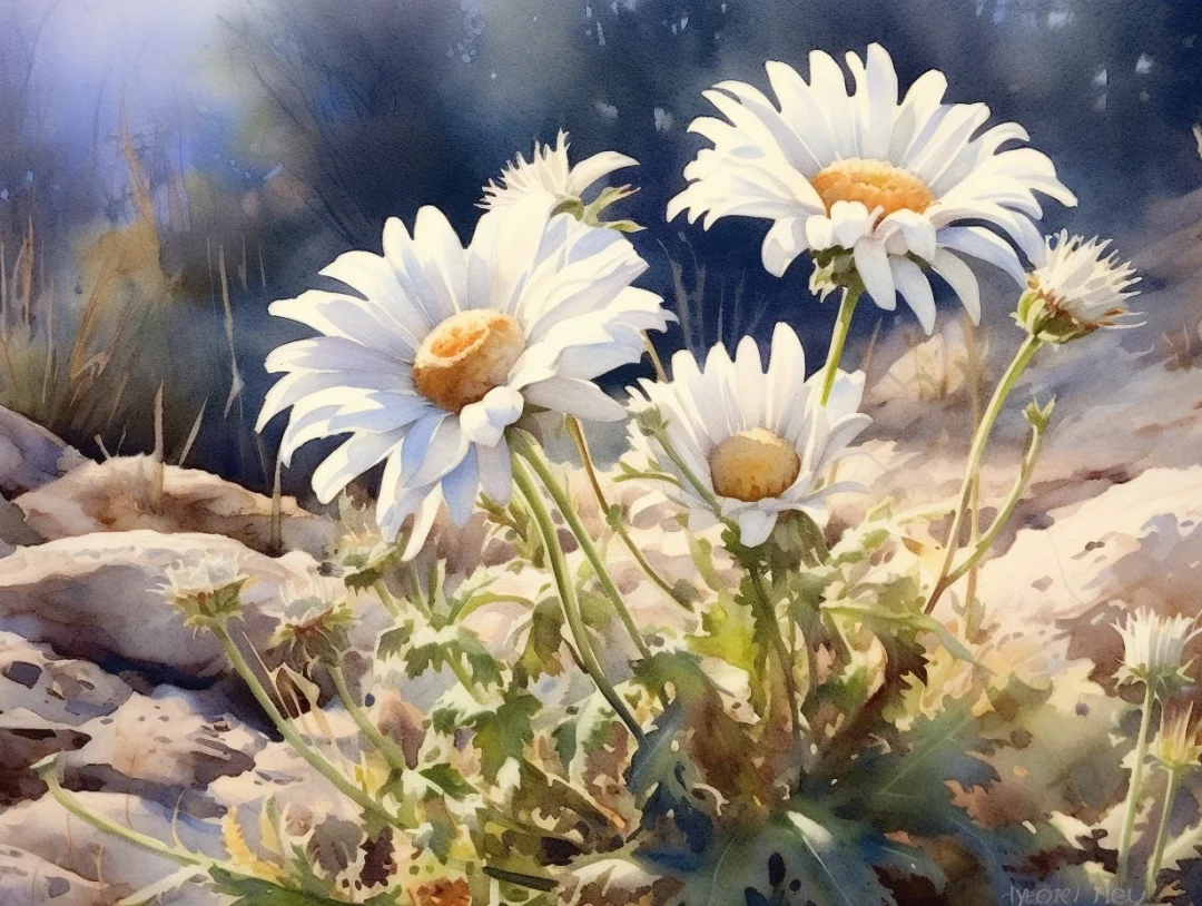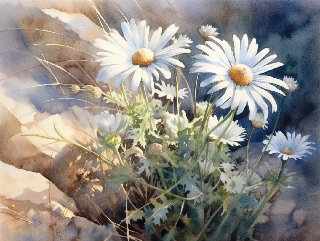 AI水彩 小白菊花(2)
