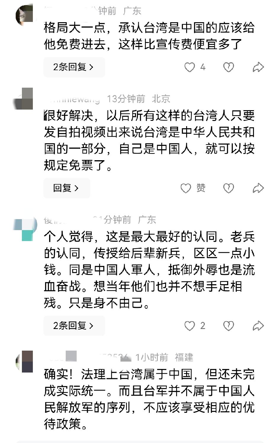 台湾老兵拿“退伍证”想蹭免票,一句“台湾是中国的”就灵?景区:规矩不背锅! 台老兵堵门口:台湾是中国的,所以我免票!景区回怼:法理是中国,系统没开通,请先别加戏。 偷换概念被秒拆:港澳回归前也属中国,可当时通行证照样要办,权利同步得等“事实落地”。身份硬伤更致命——解放军保家卫国,台军历史上干过啥?枪口指向谁?心里没点数吗? 网友出损招:想免票?先录视频背一遍“台独必须被严惩”,音量调到最大,门票我替你掏! 小编结语:统一是大道,免票是小票;想蹭福利先把立场充值到账,不然就别怪闸机铁面无私。