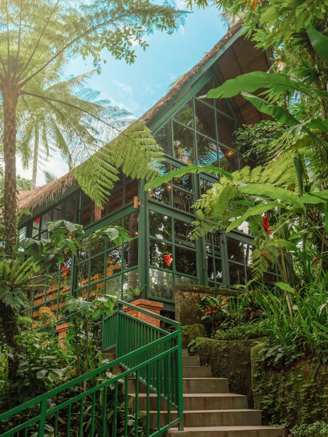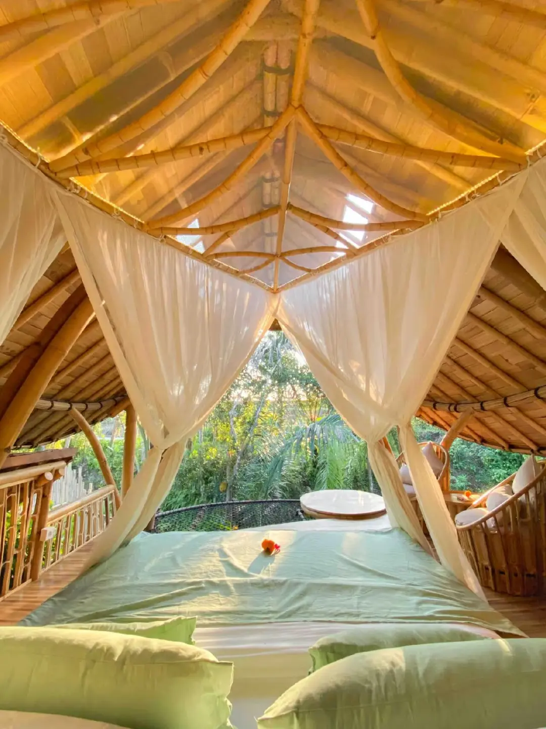 -这是1栋漂亮的生态竹屋,散发着竹子香香的味道,是当地特有的建筑形式!被郁郁葱葱的热带植物🐠包围