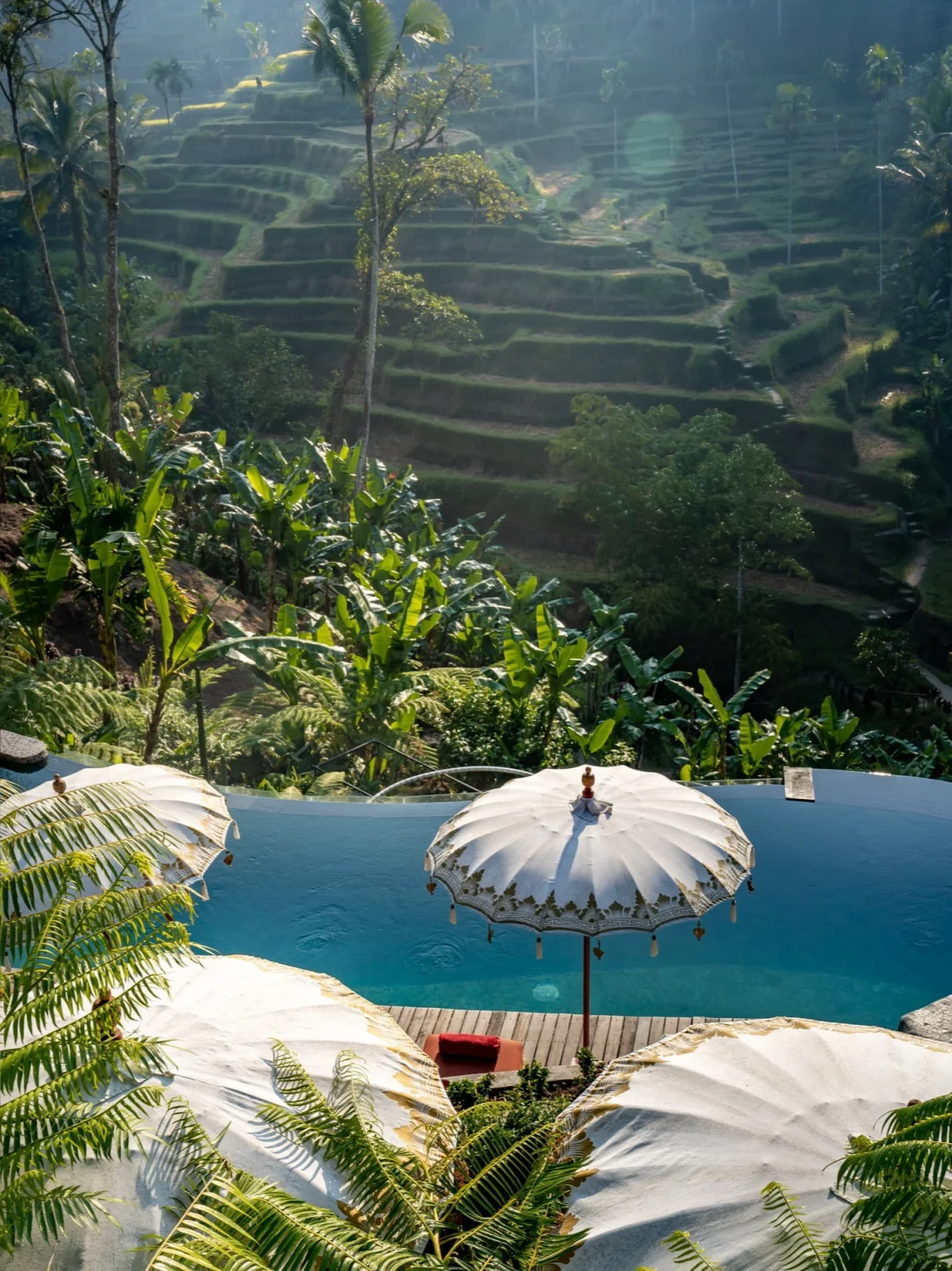 餐厅拥有绝美梯田景观,坐在这里享受美食就把美景尽收眼底。食物好吃,意大利面、脏鸭饭的味道都很不错;有泳池,水很干净透亮,但是游泳需要额外的费用;有秋千