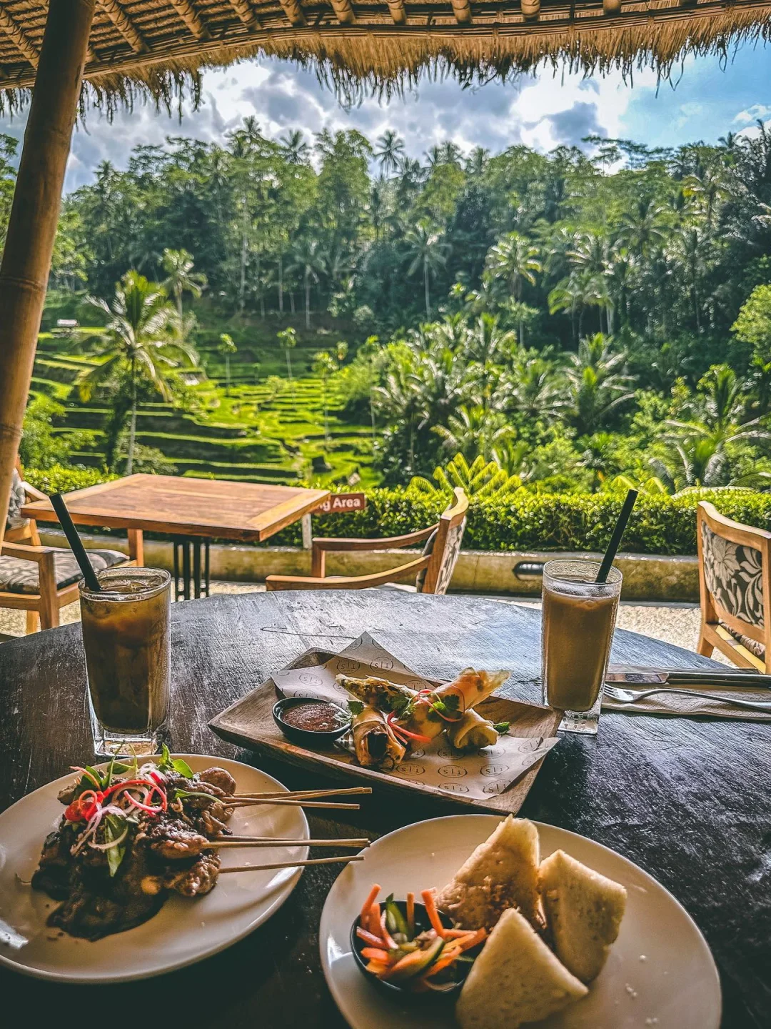 这一家稻田餐厅相对来说就更小众啦。应该是去年新开不久的,据说筹备了好几年,环境除了稻田、丛林美景,更多了几分优雅,很适合作为约会餐厅。食物当然也很好吃啦,主打印尼传统美食