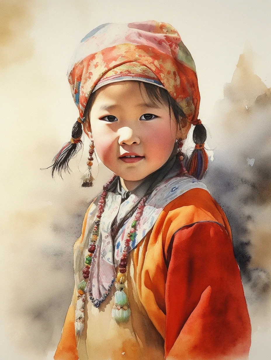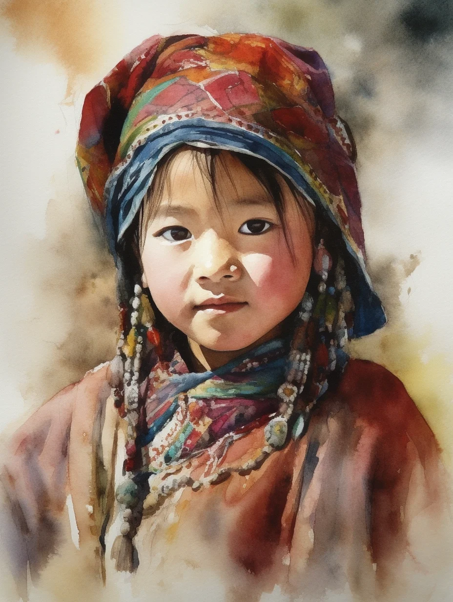 是想画藏族小女孩,但是也不知道这些服饰算是啥……