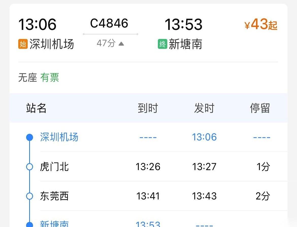 穗深城际,今天彻底变天了。 大站快车一脚油门,深圳机场到新塘南,47分钟。 中间只停虎门、东莞西,以前一个多钟头的路,现在一杯咖啡没喝完,人已经从一个城市的核心区,挪到了另一个城市的核心区。 想象一下,列车飞速掠过那些不停靠的小站,窗外的站台灯光唰地一下就甩在身后,那种感觉,就一个字:快。 但是,先别急着喊香。 爽是爽了,可你也得早点回家。往深圳机场方向的末班车,晚上9点20分。 是的,你没看错,九点二十。 想在广州多吃顿宵夜,或者在东莞办完事再从容赶车?窗户纸直接给你捅破,不行。 这就很有意思了,它给了你极致的速度,却也给你划了条早早的门禁线。 用深夜的自由,换白天的效率,这笔账,到底值不值?
