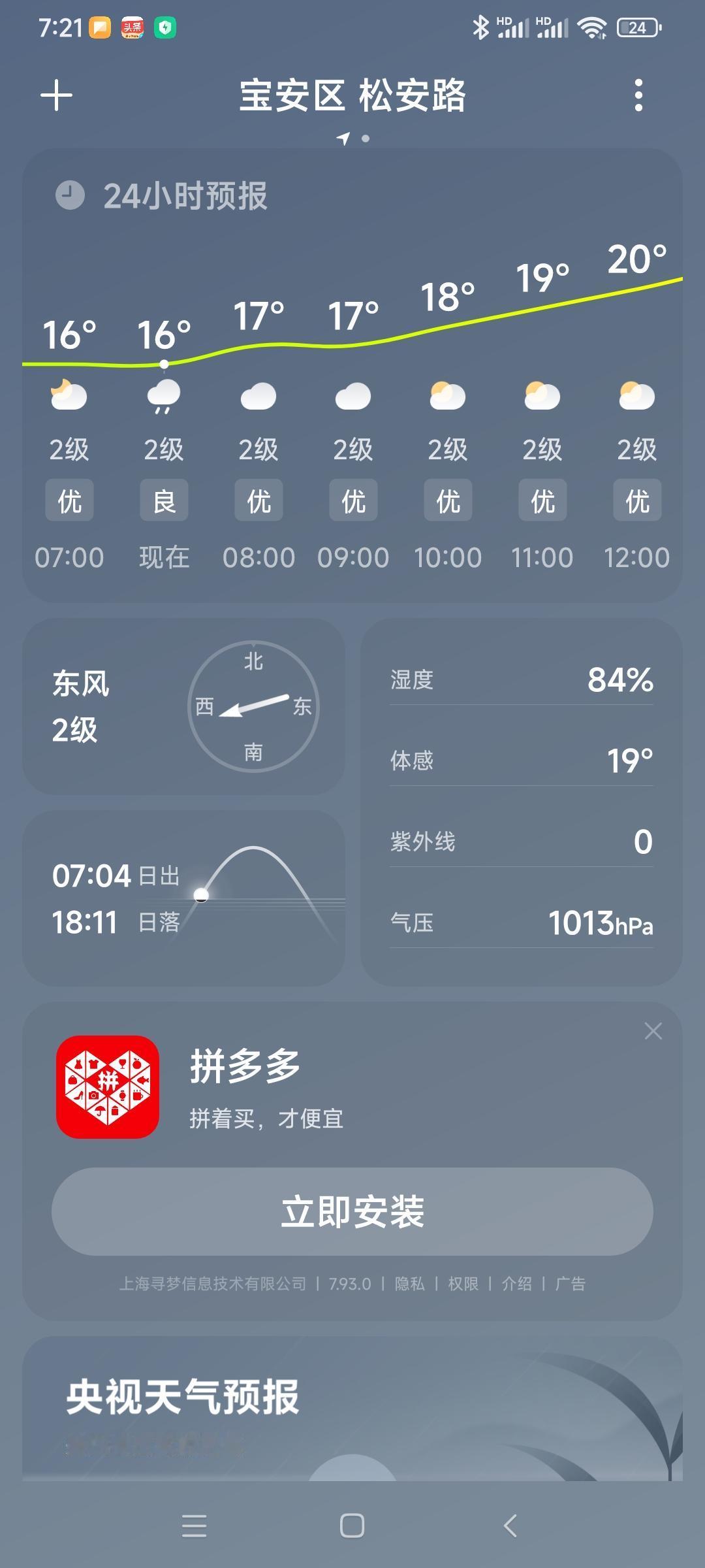 我的今日状态:😁轻松愉快 我这里的天气:🌧下雨:今日深圳小雨转多云,气温16