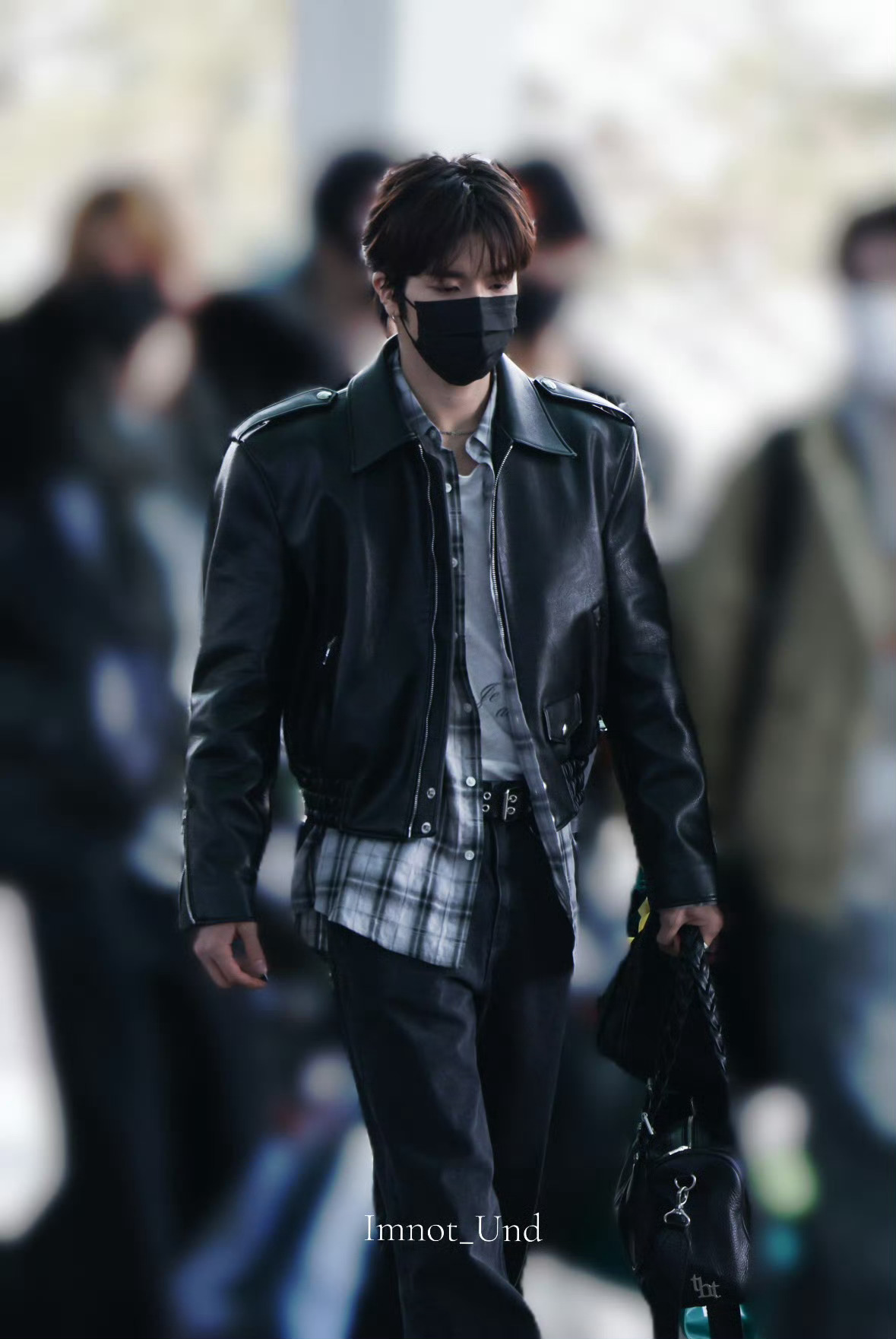 李松河黑皮衣太帅了 今天的李松河机场,黑口罩+黑皮衣+黑提兜,这也太A了,大佬出