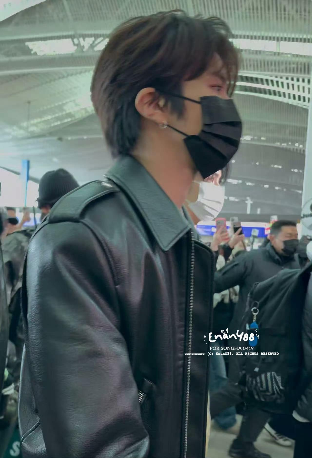 李松河黑皮衣太帅了 今天的李松河机场,黑口罩+黑皮衣+黑提兜,这也太A了,大佬出街✨