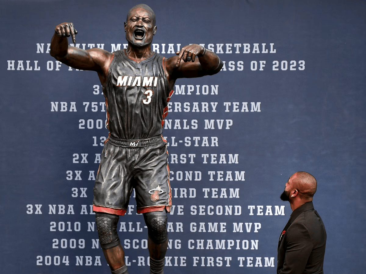 美媒晒照:韦德在今日节目中做出了和他雕像一样的表情。