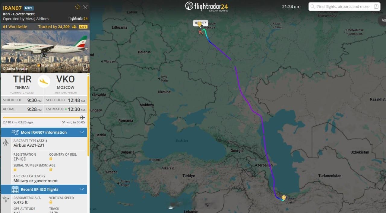 今天早些时候,一架伊朗政府飞机在俄罗斯莫斯科降落。会不会是俄罗斯与伊朗的紧急会议