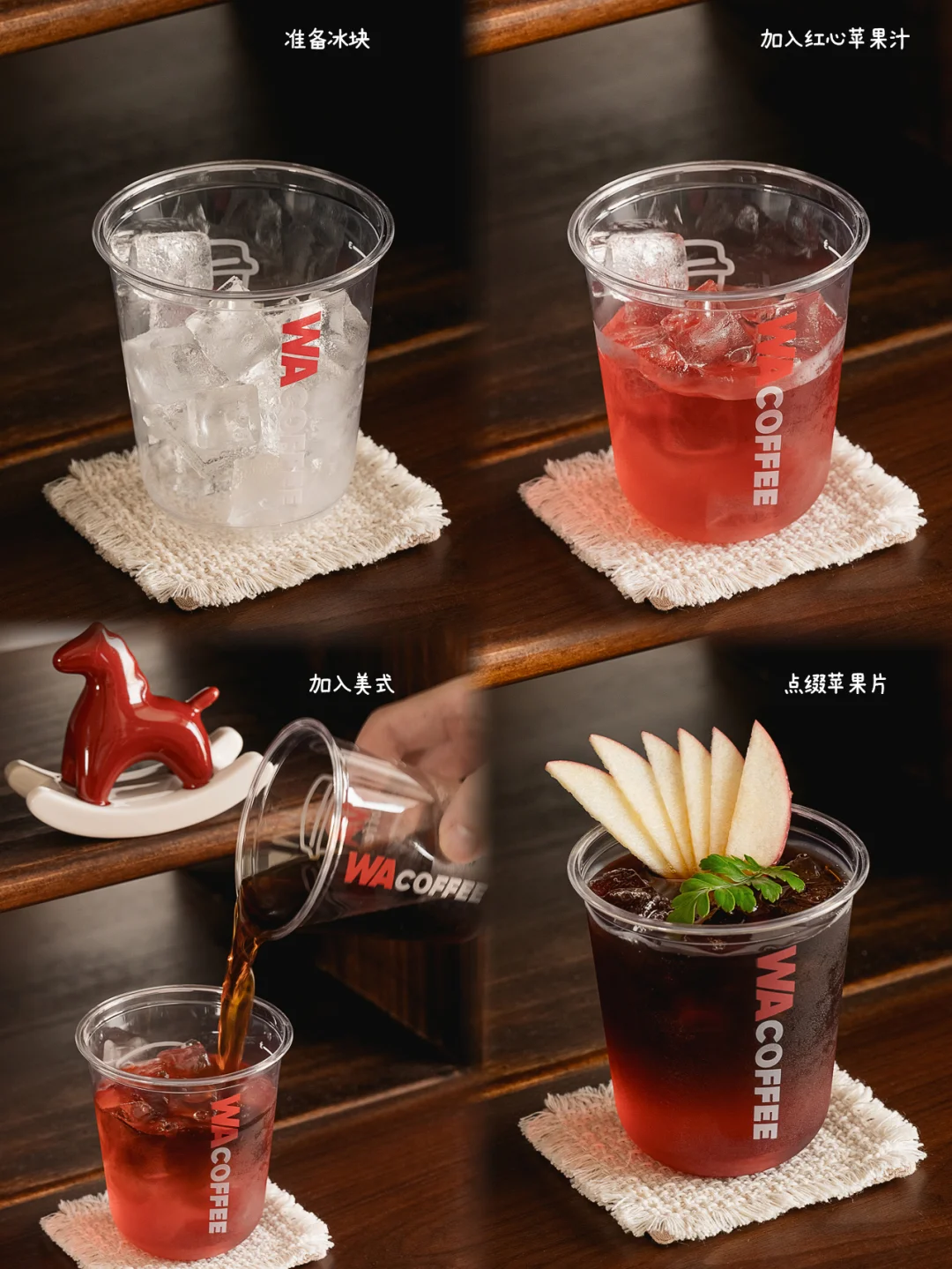 ❷倒入美式,点缀苹果片