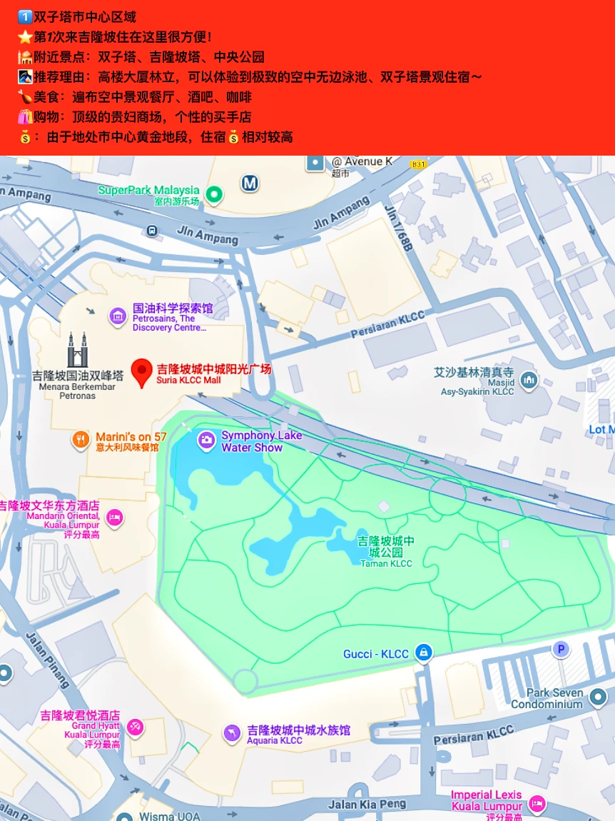 🕌附近景点:双子塔、吉隆坡塔、中央公园