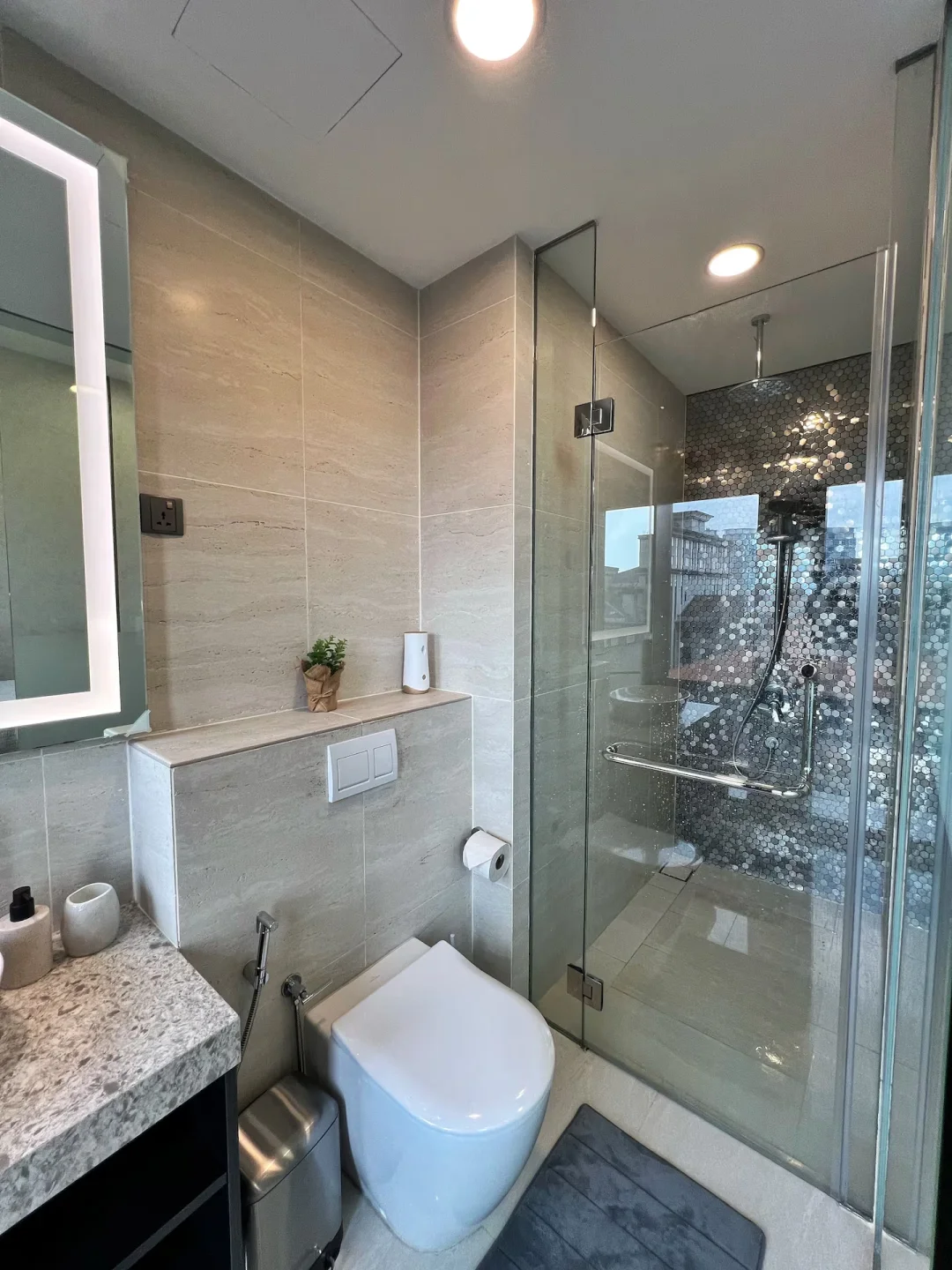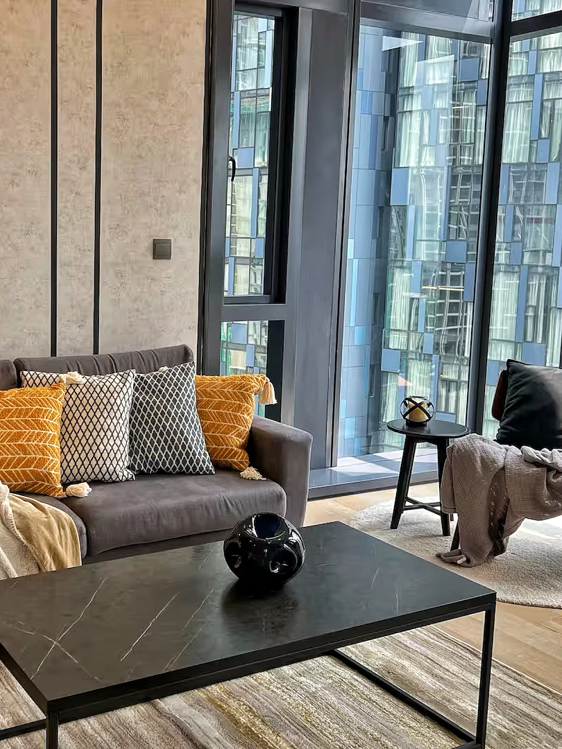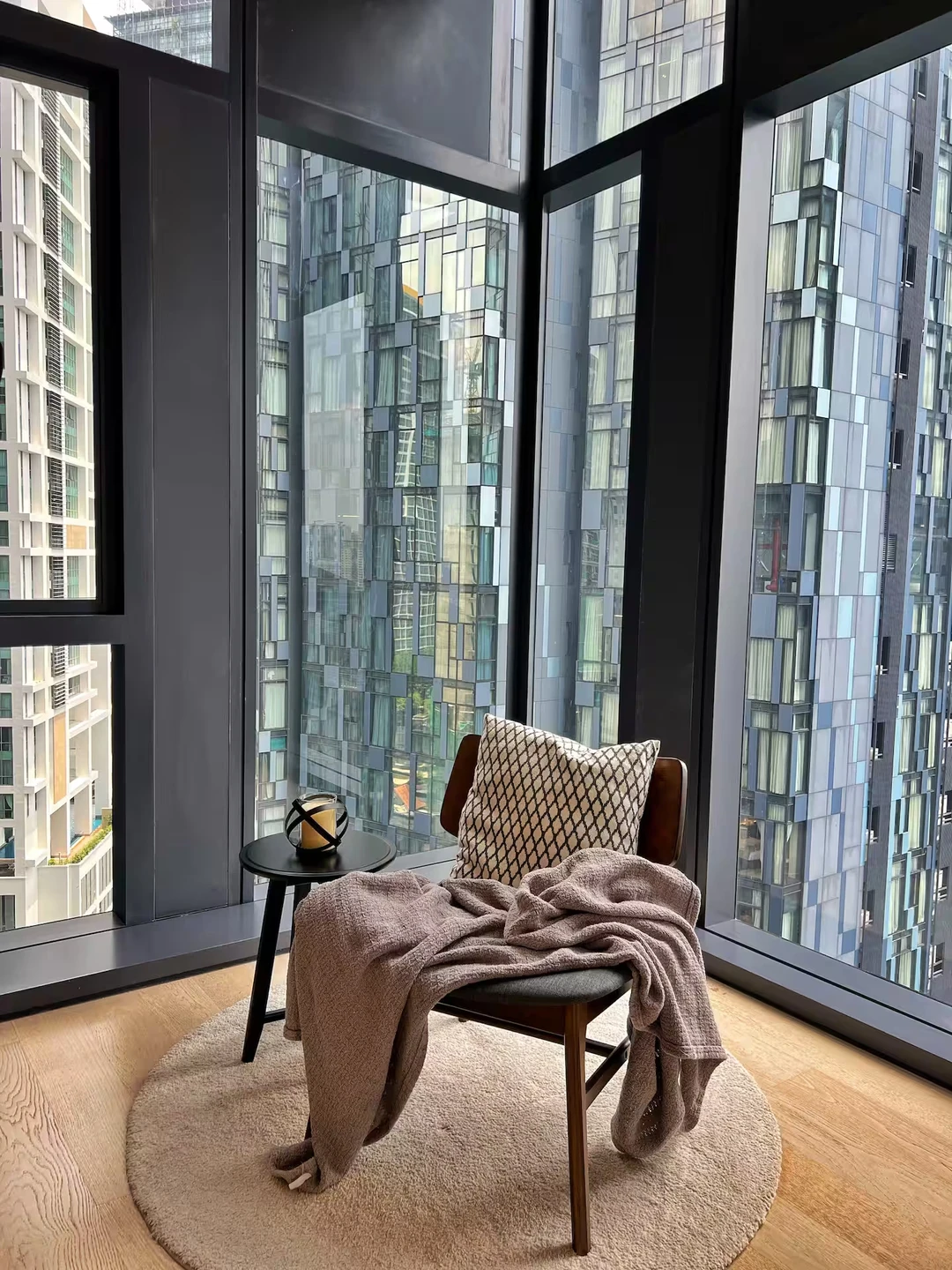 -客厅、卧室都有超大的落地窗户,窗外是林立的摩天大楼🏙️,夜幕降临可以在室内欣赏霓虹闪烁,车水马龙;清晨和傍晚也能感受迷人的阳光