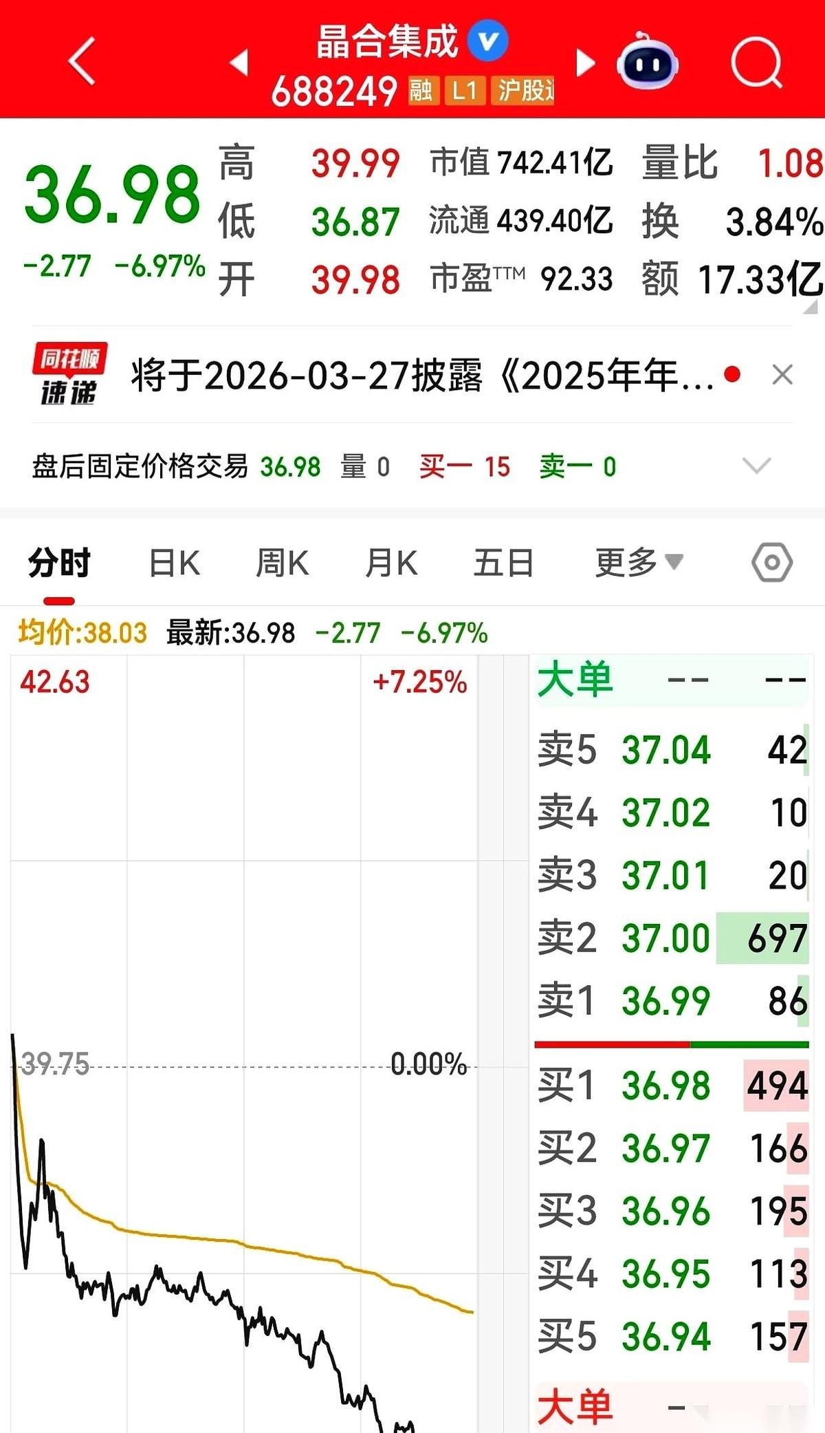 今天芯片这块,毫无征兆,一盆冰水从头顶浇下来。 中芯国际,那根绿线直挺挺地往下栽,屏幕右下角的数字,从-2%跳到-3%,最后直接钉在-4.78%上,一动不动。 紧接着,华虹公司,像被人从后面踹了一脚,一个踉跄,-5.2%。 还没完。 晶合集成,-6.97%。 华润微,-5.15%。 芯联集成,-6.43%。 那几秒钟,整个屏幕上,这五家平日里的“尖子生”,像约好了一样,齐刷刷地往下跳,连个挣扎的水花都没有,只留下一片晃眼的绿色。 办公室里只剩下键盘敲击的声音,旁边座位的大哥,刚才还滔滔不绝,现在只是把鼠标指针停在那个数字上,一言不发,就那么看着。 都说这是最硬的骨头,但这一下,到底是行情颠簸闪了腰,还是只是蹲下,为了跳得更高?