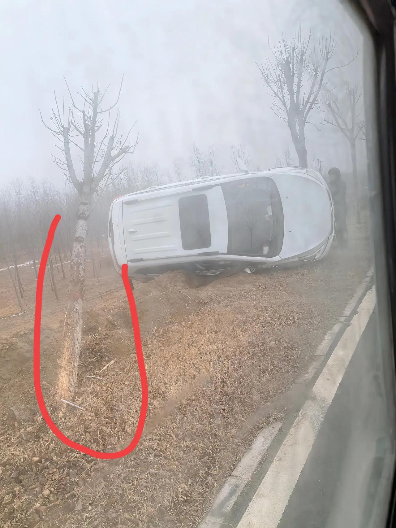 开车一定要注意安全,幸好有树挡一下,不然都冲下去了。