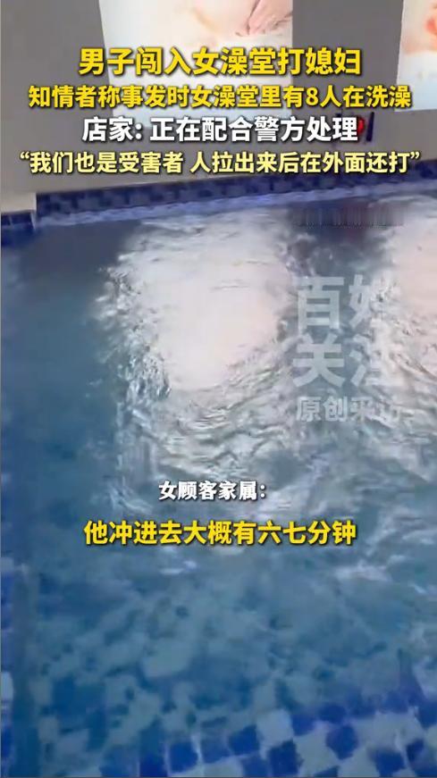 “必须严惩!”1月28日,河南周口,一男子为找妻子,毫无顾忌强行闯入女澡堂,而当时8名女性正在赤身洗澡,他不管不顾追打妻子,场面混乱又难堪!浴客慌得无处躲藏,全程却无工作人员出面制止,网友:一点保障没有,这样的浴场谁敢再去? 都说公共场所的隐私与安全底线不容触碰,但这起发生在酒店浴场的事件,却让所有人惊掉了下巴。 据浴客表述,当时女澡堂里有8名女性正在洗澡,这名男子突然猛地推开浴场大门冲了进来,嘴里还喊着妻子的名字,径直走向正在淋浴的妻子,拽着她的头发就往门外拖,一边拖拽一边拳打脚踢。 女子的哭喊和男子的怒骂混在一起,其他浴客也被吓得魂飞魄散,一边尖叫一边手忙脚乱地抓过浴巾裹住身体,既羞愤又恐惧,顿时整个澡堂瞬间陷入混乱。而在这个过程中,浴场的工作人员始终没有出现阻拦。 大家纷纷对浴场管理表示不满,纷纷质疑浴场的安保措施和应急处理能力,认为其严重失职,不仅侵犯了女性的隐私,还放任暴力事件发生。而后浴场表示一人发20张洗澡券。 但是大家都不买账,毕竟发生这样的事,谁还敢来这儿洗澡?安全保障从来不是不是一句空话,尤其是涉及隐私的场所,必须严格落实安保措施,一旦发生突发情况,要第一时间介入处置,否则终将付出代价。 信息来源:《河南一洗浴中心男子闯入女澡堂:男子冲入后与一女子发生肢体冲突,警方介入》新京报