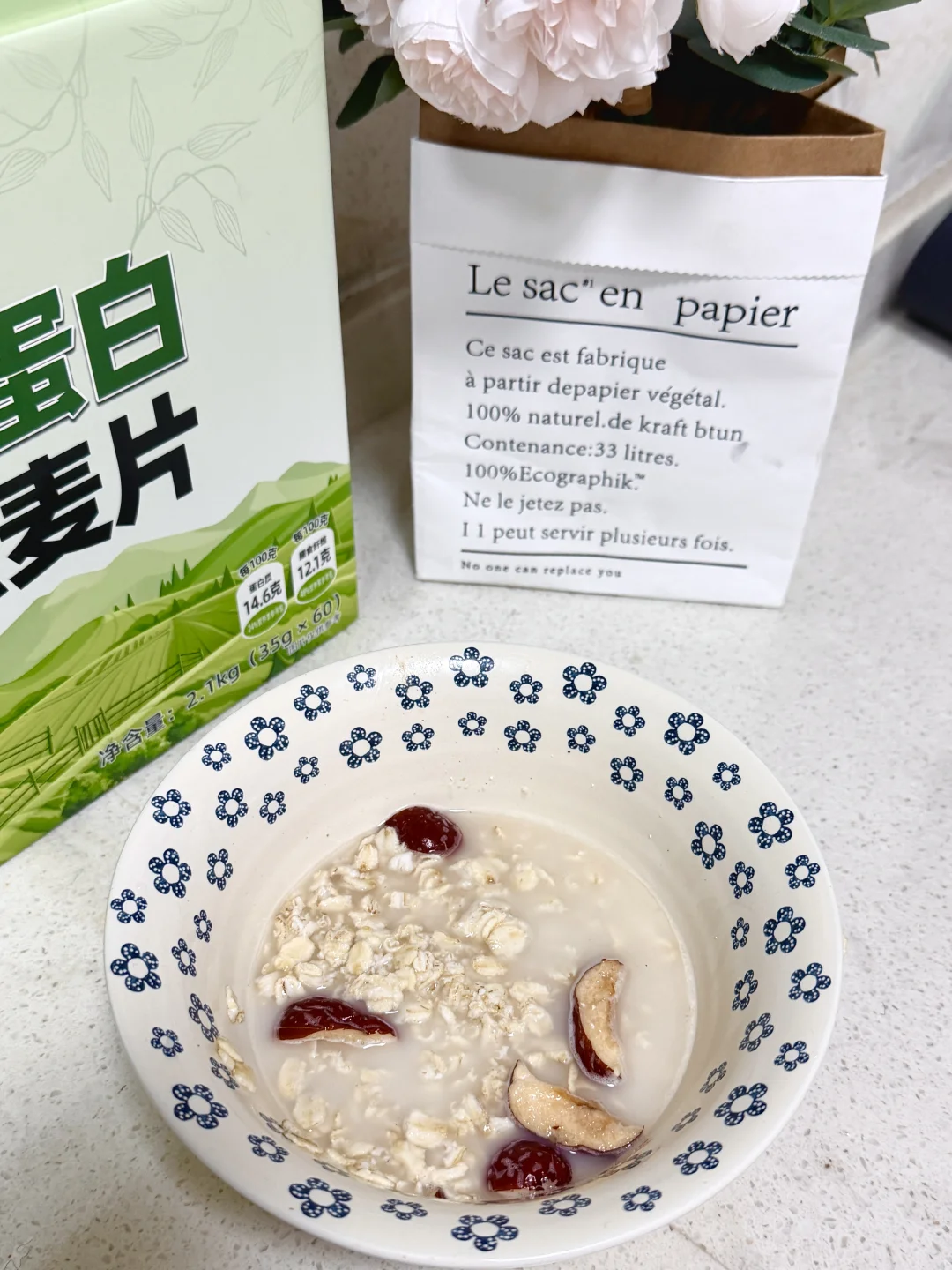 所以,家中常备谷物高🥚白燕麦,牛奶冲泡,再配上酸奶再加点水果,懒人早餐5分钟就搞定啦,对赶早高峰的懒人很方便了就是说~