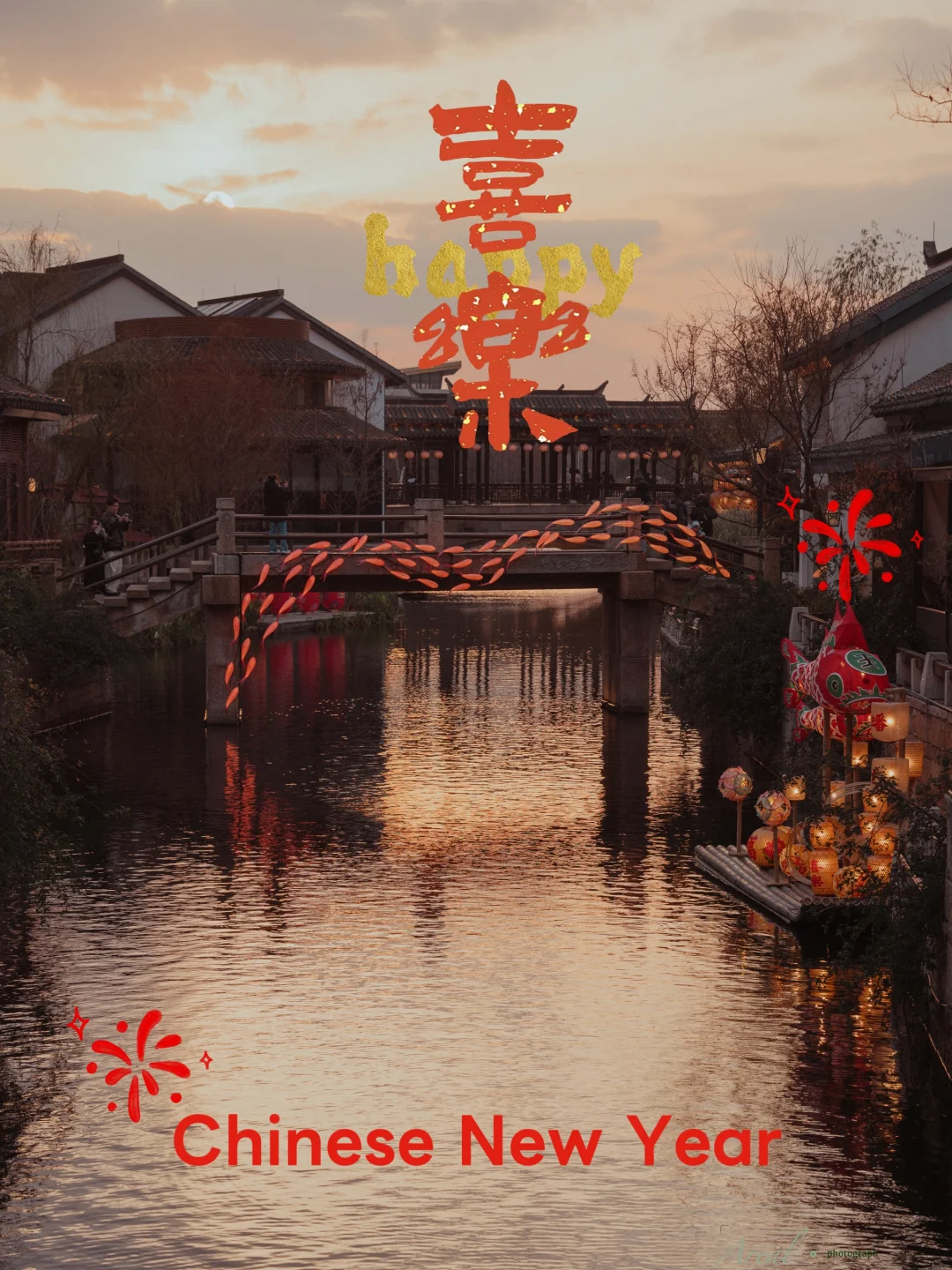 浅色系汉服 / 旗袍适配水乡;日常穿毛衣 + 半裙,配红色围巾提亮;加流苏发簪、兔子灯道具更出片~