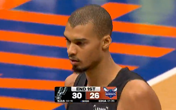 马刺首节比赛30-26领先黄蜂,哈珀替补登场后贡献7分