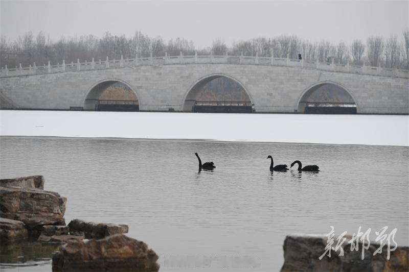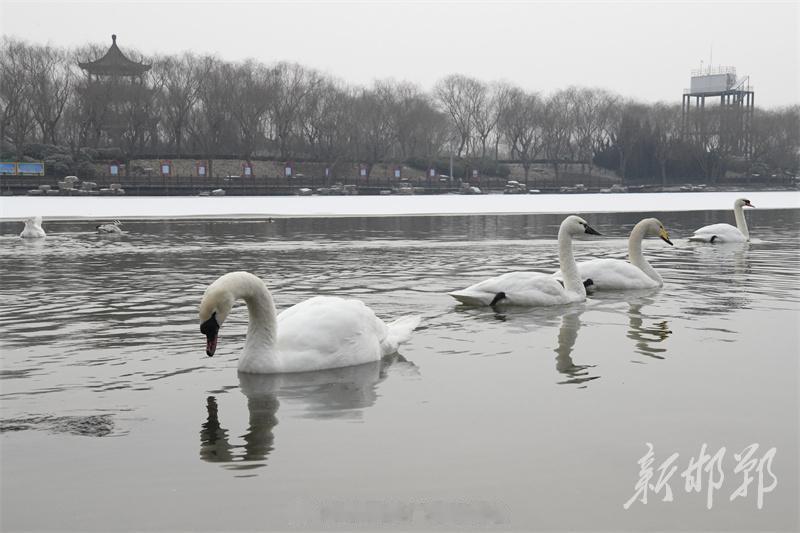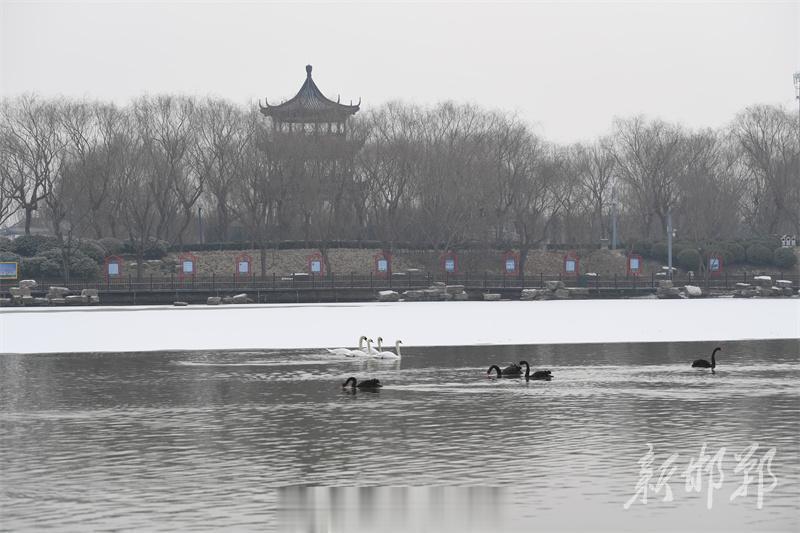 1月30日,邯郸广平县迎来降雪,天鹅湖公园银装素裹,尽显冬日韵味。未结冰的湖面上,天鹅成群游弋、追逐嬉戏,灵动多姿。湖畔古雅的亭台楼阁覆上薄雪,与湖景相映成趣,吸引不少游客驻足观赏、拍照打卡,定格这幅人与自然和谐共生的冬日美景。(程学虎)