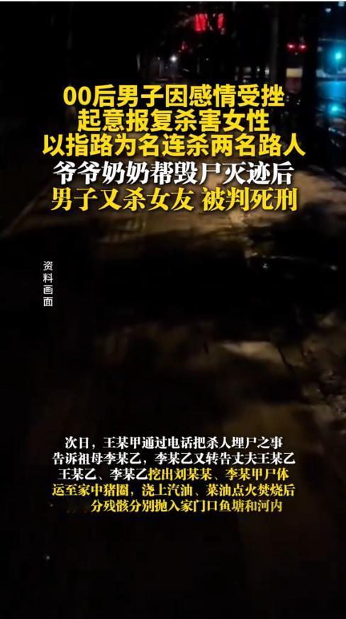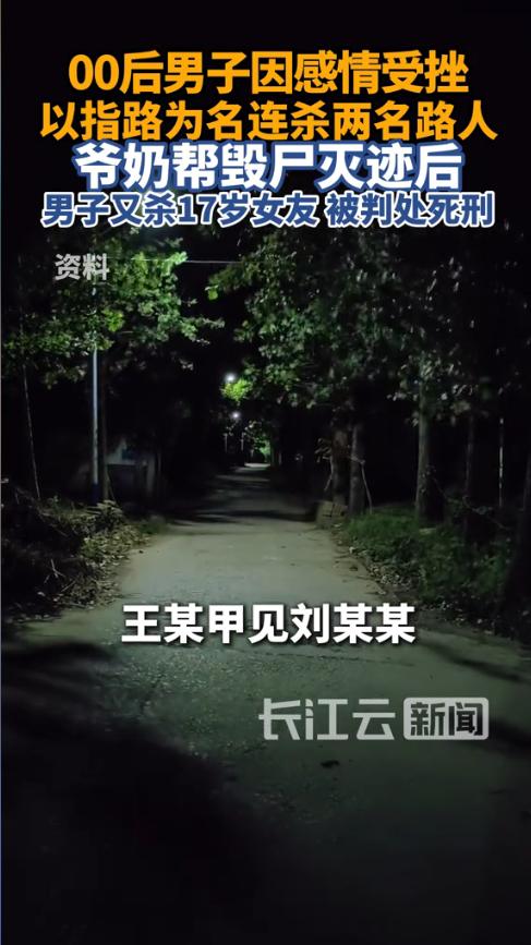“丧心病狂!”2020年5月,一00后男子因为感情受挫,竟以指路为由接连杀害两名路人,而爷爷奶奶知道后不仅没有报警,更是帮其毁尸灭迹,男子随后又残忍杀害了自己17岁的女友,最终被法院判处死刑,网友:杀人恶魔必须严惩! 情绪失控往往是暴力犯罪的导火索,但这并不能成为杀人的借口,这位男子不仅将个人情感挫折发泄在无辜路人身上,更在家人的包庇下变本加厉,最终酿成三条人命的惨剧。 男子因与女友感情出现矛盾,内心积怨已久。这天晚上,心情烦闷的他在路边行走时,见没什么人,竟心生歹念。看见前面有两位女生,于是便以问路为借口,诱骗两名路人前往偏僻处,将其残忍杀害。 事后,他将这件事告诉了爷爷奶奶,老两口听后不仅没有选择报警,反而将尸体挖出来,浇上汽油,点火焚尸,帮助他掩盖罪行。而后,男子并没有收敛,见有人替自己处理,更是变本加厉。 不久后,他和自己17岁的女友发生了口角,于是在第二天下午就将女友约到宾馆直接杀害。警方接到失踪报案后展开调查,通过现场痕迹和监控线索,最终锁定该男子为嫌疑人,并在其家中抓获了他和参与毁尸灭迹的爷爷奶奶。 网友表示,情绪失控不是犯罪的遮羞布,活生生的三条人命就没了!也提醒所有家长,不能溺爱和包庇孩子的错误,否则只会酿成更大的悲剧。 信息来源:《00后男子因感情受挫,起意报复杀害女性,以指路为名连杀两名路人,爷爷奶奶帮毁尸灭迹后,男子又杀女友,被判死刑》安徽商报