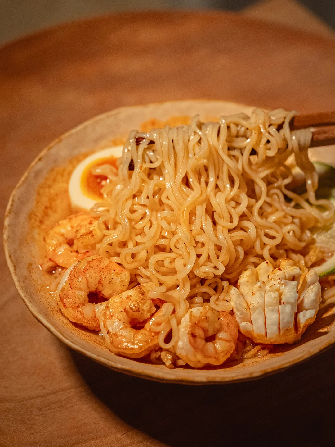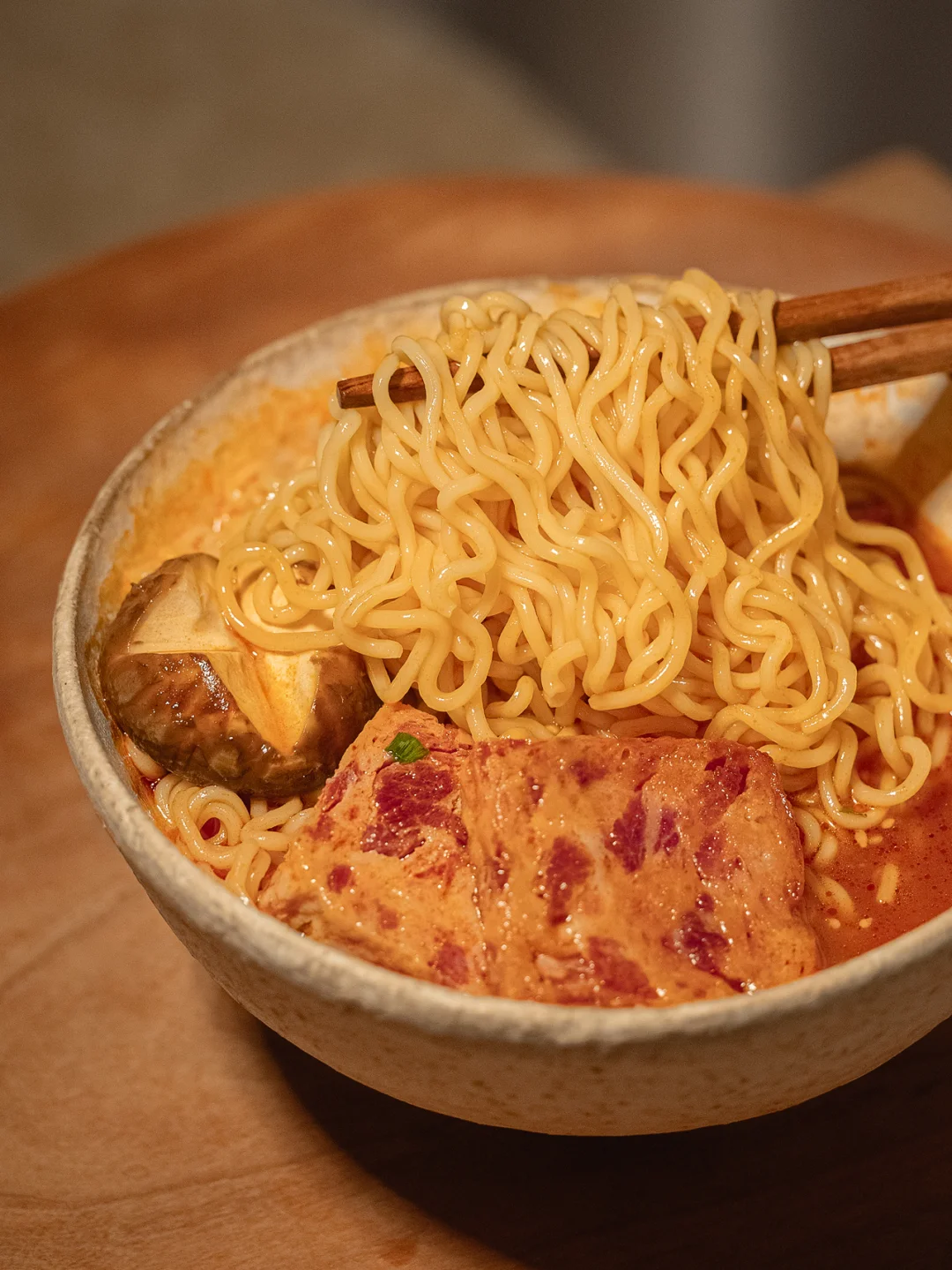 🍺柏林酸小麦啤酒 🦐冬阴功酸辣虾面 🌶️香辣午餐肉拉面 赶晚手头的工作已是深夜🌙 而卸下压力后的另一个灵魂才刚刚苏醒 因为当下不再被紧张的时间和社交所束缚 身心开始变得自由,并渴望美食的治愈🍜 吃完面,喝完酒 疲劳的身体渐渐舒展开来 满满的幸福感由内心涌现 仿佛世界在这样的夜晚里 也变得更加温柔和可爱🌙