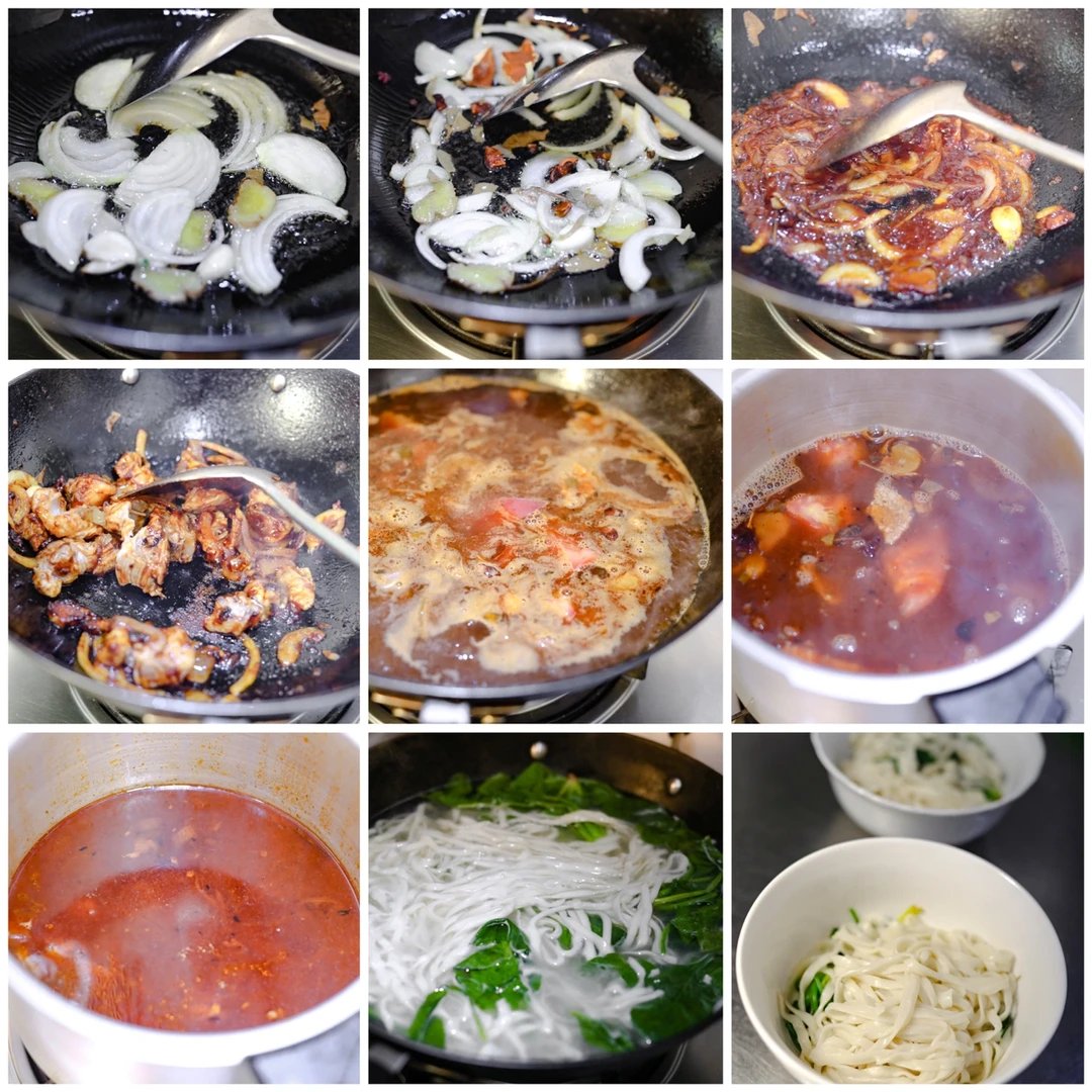3.锅中加入食用油,洋葱和姜蒜以及中草药爆香之后,加入酱汁,一定要把酱汁的豉香味炒出来,加入开水。根据自己的口味再来调整是否加盐,本身这些酱汁中都有一定的盐分了~