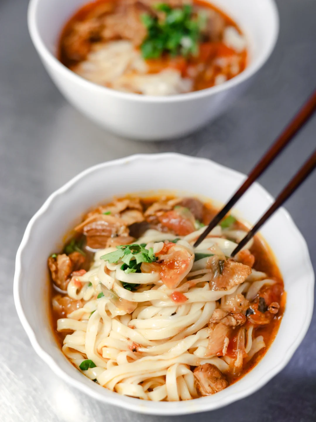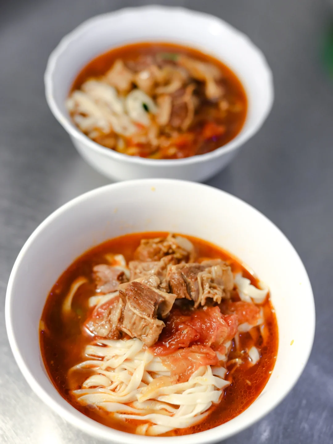 番茄和牛腩是超级完美的搭档,除了能做出非常美味的菜肴,也能做出很可口的汤面。牛腩是低脂肪,高蛋白的肉类,减脂期间的福音。