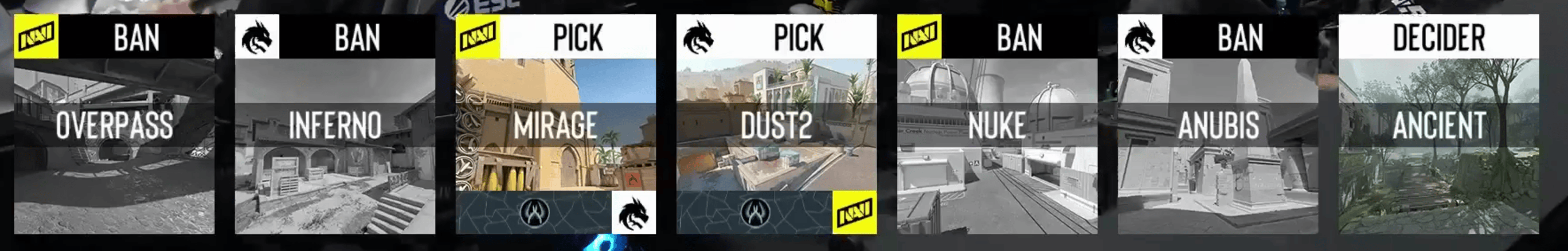 NaVi禁用Overpass,Spirit禁用Inferno
