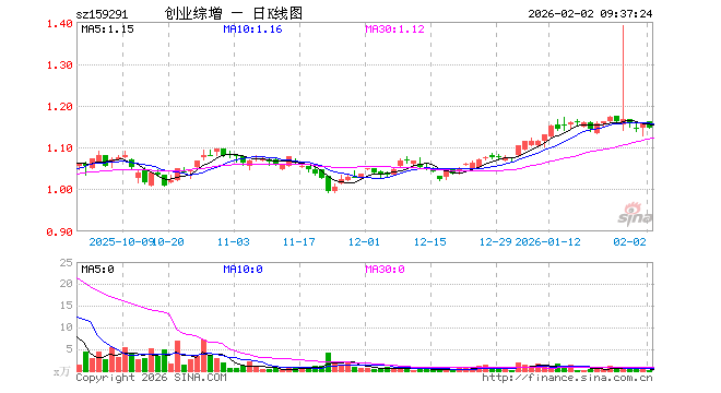 2月2日,创业板综增强ETF招商(159291)开盘涨0.43%,报1.162元。创业板综增强ETF招商(159291)重仓股方面,宁德时代开盘涨2.00%,中际旭创跌2.16%,东方财富跌0.40%,阳光电源涨1.43%,新易盛涨9.00%,亿纬锂能涨2.38%,汇川技术跌0.15%,润泽科技涨0.21%,同花顺跌0.00%,胜宏科技涨1.22%。