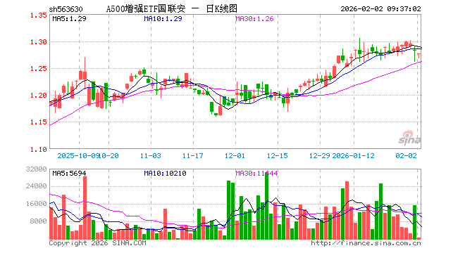 A500增强ETF国联安(563630)业绩比较基准为中证A500指数收益率,管理人为国联安基金管理有限公司,基金经理为章椹元、冯浩、何贤发,成立(2025-06-19)以来回报为28.50%,近一个月回报为4.09%。