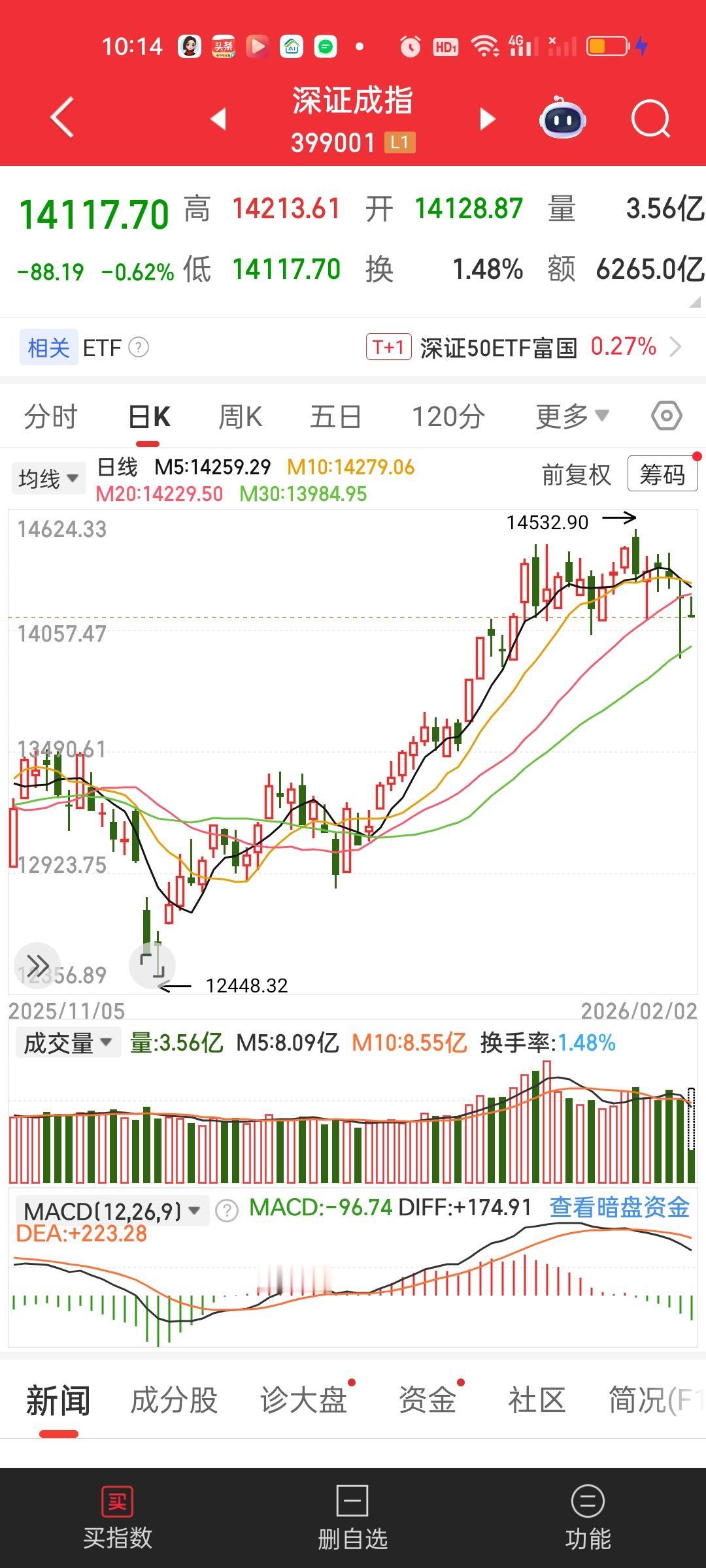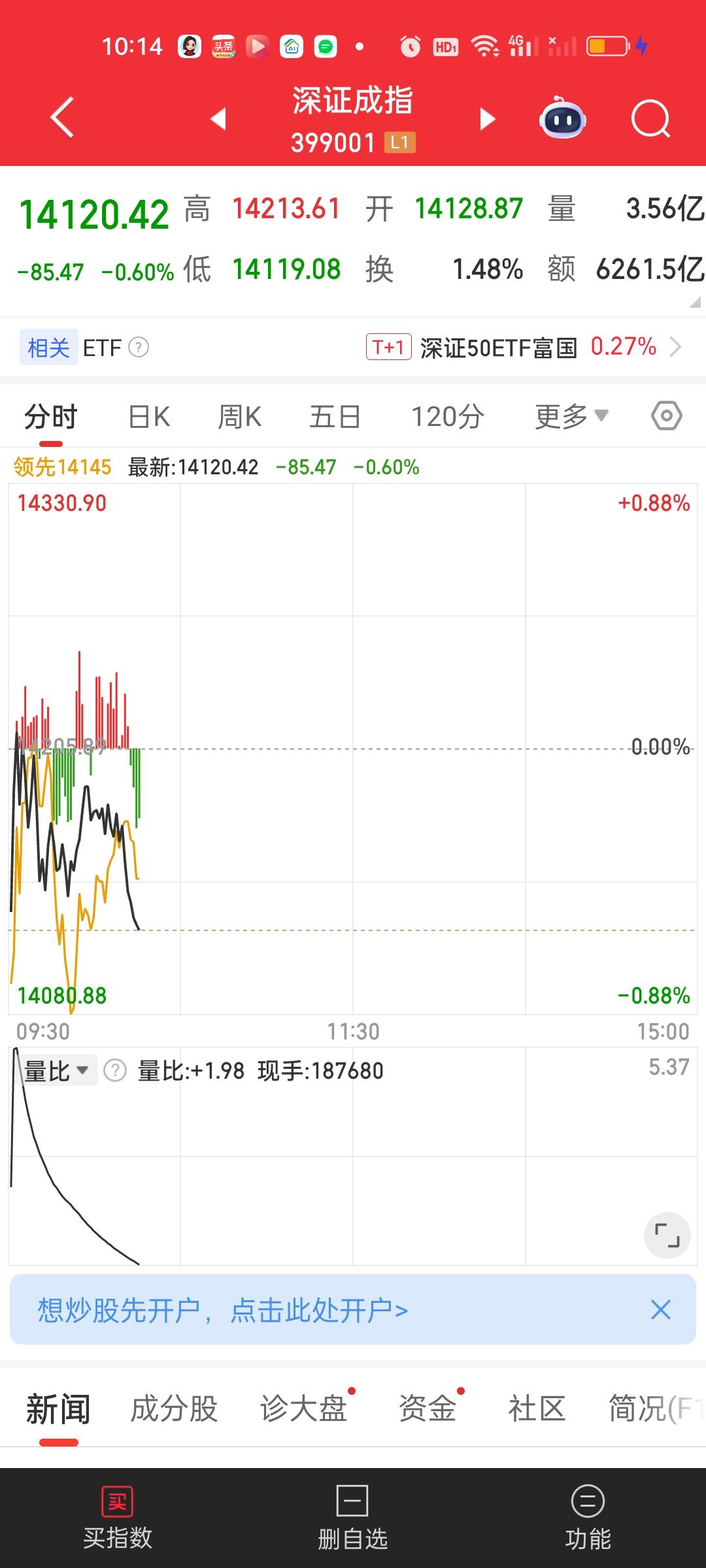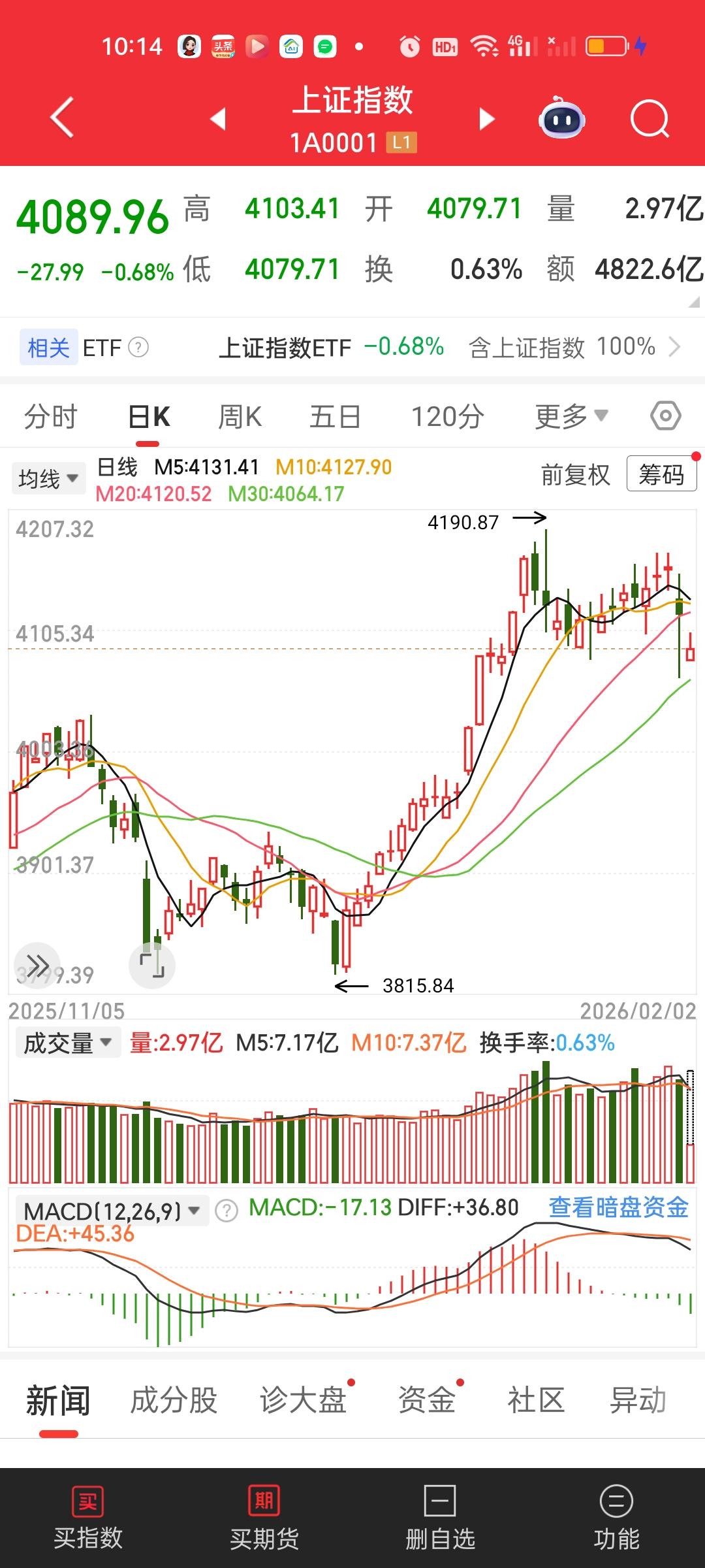 今天就和预测的一样走的低开高走的路子,开盘点也就是暂时的最低点。但二次回落肯定会有,所以在低点买进高点卖出是可以稳稳收下这个正T的,这个地方不可以恋战,先把正T的利润放到口袋再说,然后可以持币观望,不用急着进,因为大盘走的很弱,那么二次回落就一定会有。所以一定会给你低点买进的。看二次回落的位置会不会破今天的开盘最低点。破了就需要再等等。
