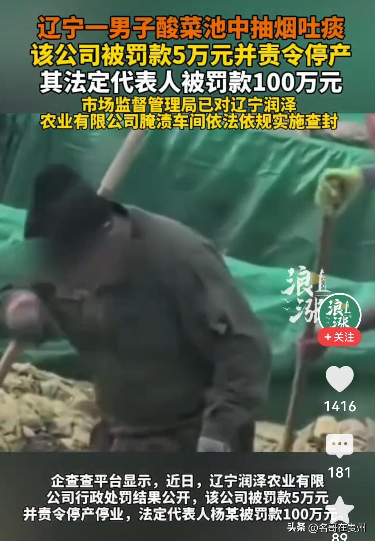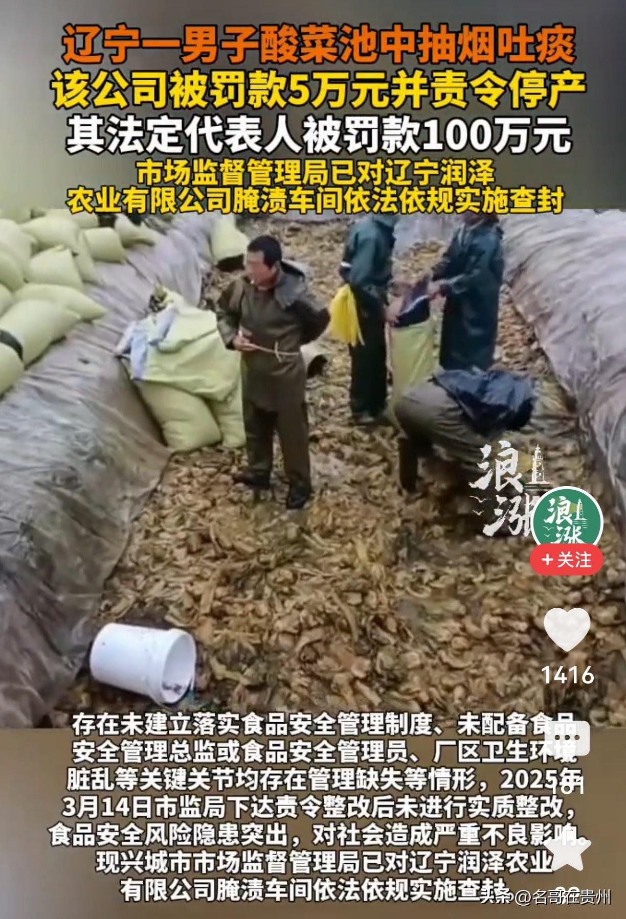 罚100万都算轻的!酸菜池里抽烟吐痰,这公司早被警告过! 刚公布的罚单,看得人又解气又恶心!辽宁一家公司的工人,竟然在酸菜池里边干活边抽烟,随口就把痰吐进腌菜池里。现在罚单下来了:公司罚5万、停产停业,而公司的法定代表人个人,被重罚100万元。但深挖下去你会发现,这张百万罚单背后,是这家企业把消费者的健康当儿戏,对监管部门的警告充耳不闻! 1. 画面太恶心,监管反应快 这事儿最初是去年10月,有网友晒出了一段让人反胃的视频。视频里,一个男的站在巨大的酸菜池中,用钢叉翻动酸菜,整个过程烟不离手,还时不时“咳——tui”,把痰直接吐在池子里。这酸菜,可是好多人吃泡面、下饭菜的必备啊! 万幸的是,监管部门的动作非常迅速。兴城市市场监督管理局在接到举报的当晚就连夜出动。最关键的一步是:当时那批正在腌渍的“老痰酸菜”被全部当场扣押,一滴都没流入市场,最后被销毁处理。这一点必须给监管的雷厉风行点赞,至少没让这些脏东西端上我们的餐桌。 2. 深挖下去,更让人愤怒的真相 如果只是工人素质差,或许还能说是管理疏忽。但处罚书透露的信息,才真正让人火大。原来,早在这件事发生的7个月前,也就是2025年3月,市场监管局就因为这家公司“厂区卫生环境脏乱”、“食品安全管理缺失”等问题,给它下达了《责令整改通知书》。 然而,在接下来的半年多时间里,这家公司对整改要求置若罔闻,没有任何实质行动。也就是说,他们明明知道自己厂子卫生一塌糊涂,却就是不改!直到工人抽烟吐痰的视频被全网曝光,盖子彻底捂不住了。这种明知故犯、阳奉阴违的态度,比单一的事件更恶劣! 3. “零容忍”的罚单,究竟罚了什么? 所以,这次的重罚,罚的绝不仅仅是“一口痰”。我们来拆解一下这张105万的罚单: · 对公司罚5万并责令停产停业:罚的是它长期未落实食品安全主体责任,制度形同虚设,环境脏乱差。 · 对法定代表人个人重罚100万:这记“重拳”才是焦点。它明确传递了一个信号:食品安全的第一责任人,就是企业老板!想当“甩手掌柜”,出了事只让公司背锅?不行!现在法律要求“处罚到人”,老板疏于管理,就要承担最直接、最严厉的个人责任。 这不仅仅是罚款,更是一个强烈的警示:在食品安全问题上,没有“亡羊补牢”,只有“零容忍”。今天你纵容一口痰,明天就可能酿成大祸。 4. 反转:罚单之后,公司已风雨飘摇 更有意思的是,有媒体通过天眼查发现,这家辽宁润泽农业有限公司,在今年1月份还新增了将近150万元的欠税。结合这105万的罚单,这家公司的处境可想而知。 这似乎印证了那句话:一家连基本卫生和法律责任都不在乎的企业,它的经营状况很可能也是一团乱麻。食品安全是企业的生命线,这条线断了,企业的生命也就快到头了。 大家常说“眼不见为净”,但这次我们“眼见为实”了。从几年前的“土坑酸菜”到今天的“老痰酸菜”,为什么刺痛我们神经的总是这些日常食品?监管的“霹雳手段”让我们安心.,但守住舌尖安全,不能只靠监管部门的亡羊补牢。 这百万罚单,你觉得能真正震慑住那些无良商家吗?作为普通消费者,我们除了用脚投票,还能做些什么来倒逼整个行业自律? 在评论区说说你的看法吧! 辽宁男子酸菜池抽烟吐痰被罚 食品安全零容忍 老痰酸菜 处罚到人