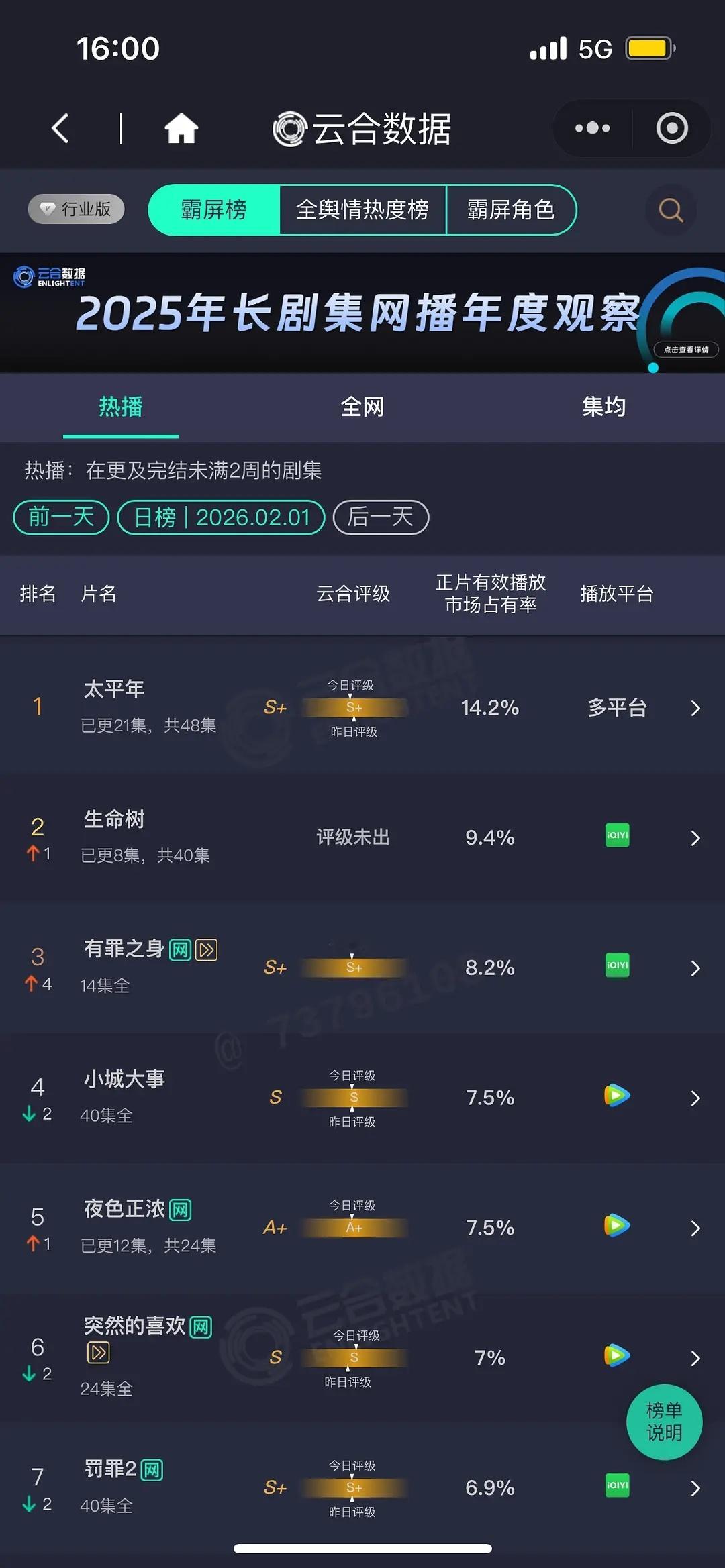 生命树 9.4% 1600+,集均1500都难哇年少有为 次日5.5% 900+ 扑开扑走,新丽男频ip