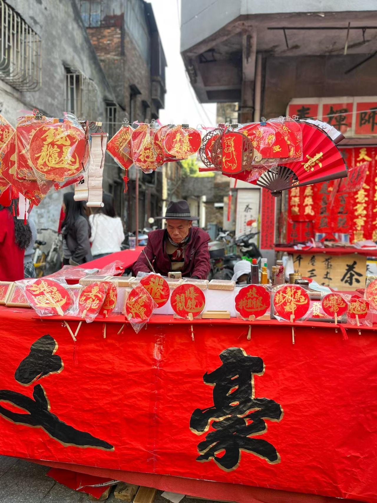 红红的年味浓——筷子路 筷子🥢路最早是售卖筷子而有名,后来有个大聪明在附近的路名叫莲花路,人民觉得好意头,结婚时婚车都会专程兜过来的,寓意连生贵子。 近十几年,这里变成春节写对联、挥春的地方,很多老一辈的人都钟意找老师傅写返一两幅的。 近几年玩出花,很多小汽车和电动车都过来写的,将好意头的话写在车上,图个吉利,变成网红打卡点。