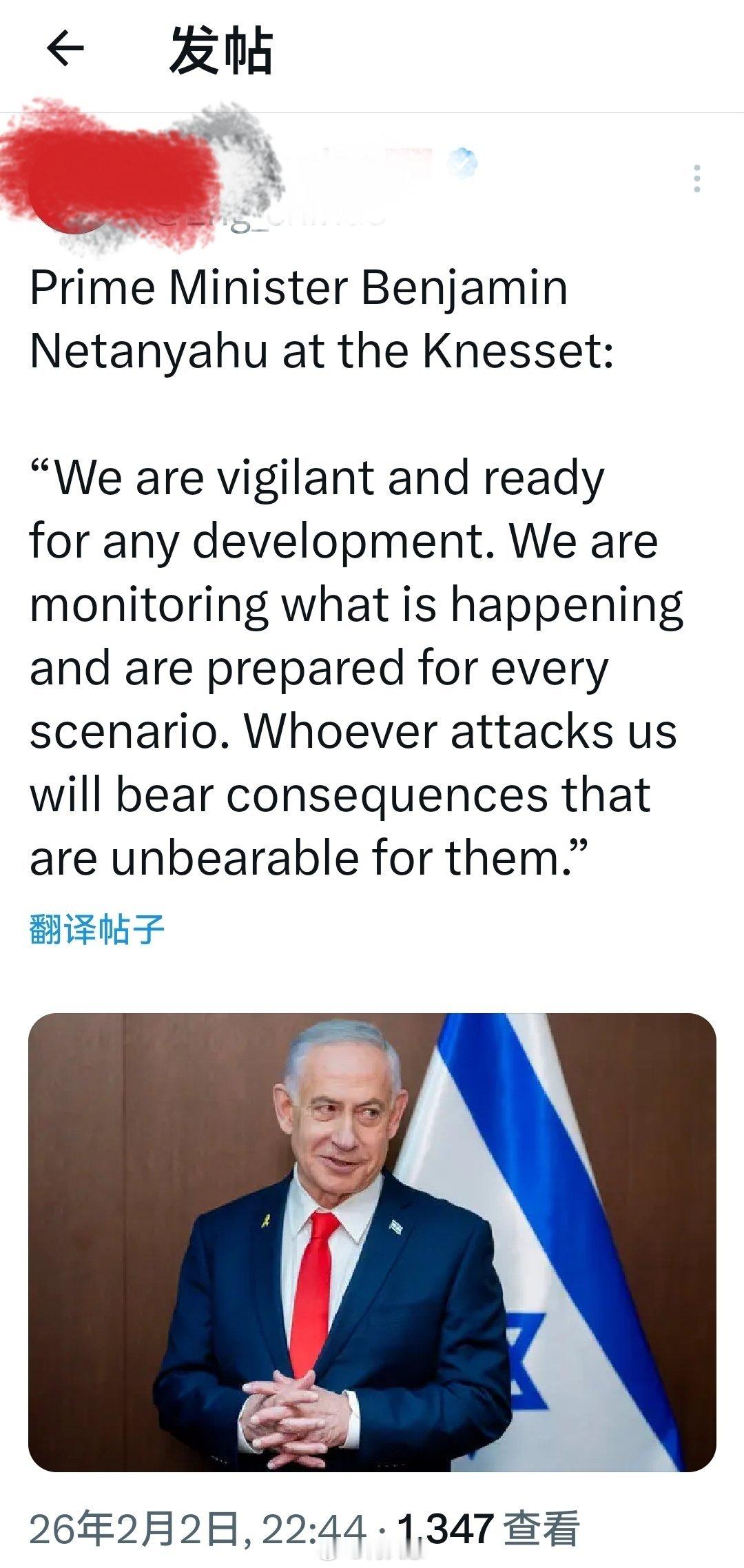 以色列总理本雅明·内塔尼亚胡在议会发表讲话: