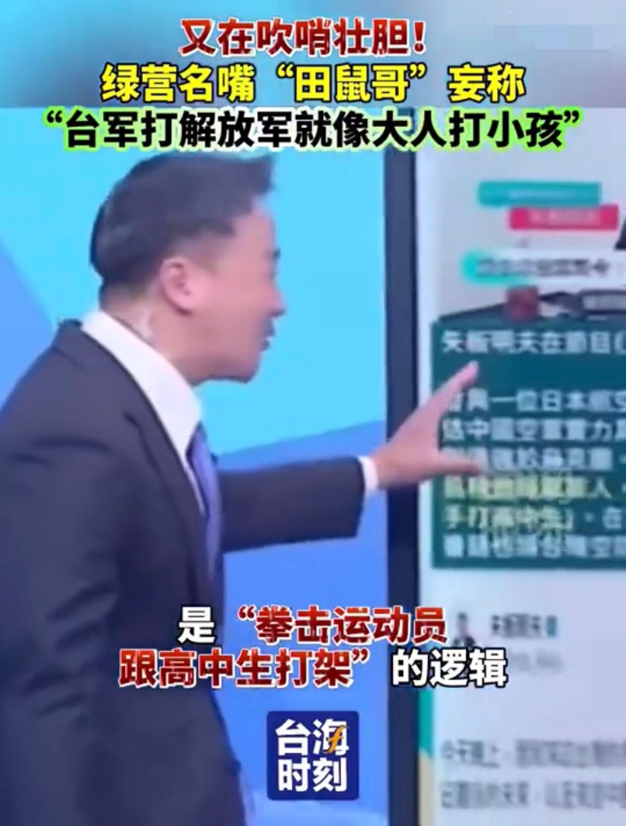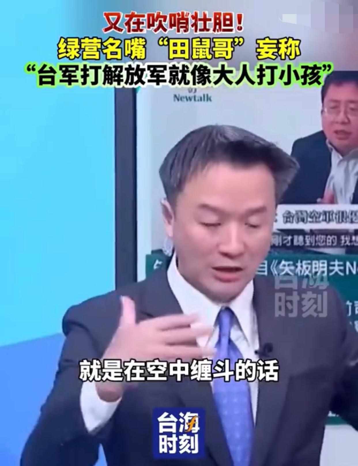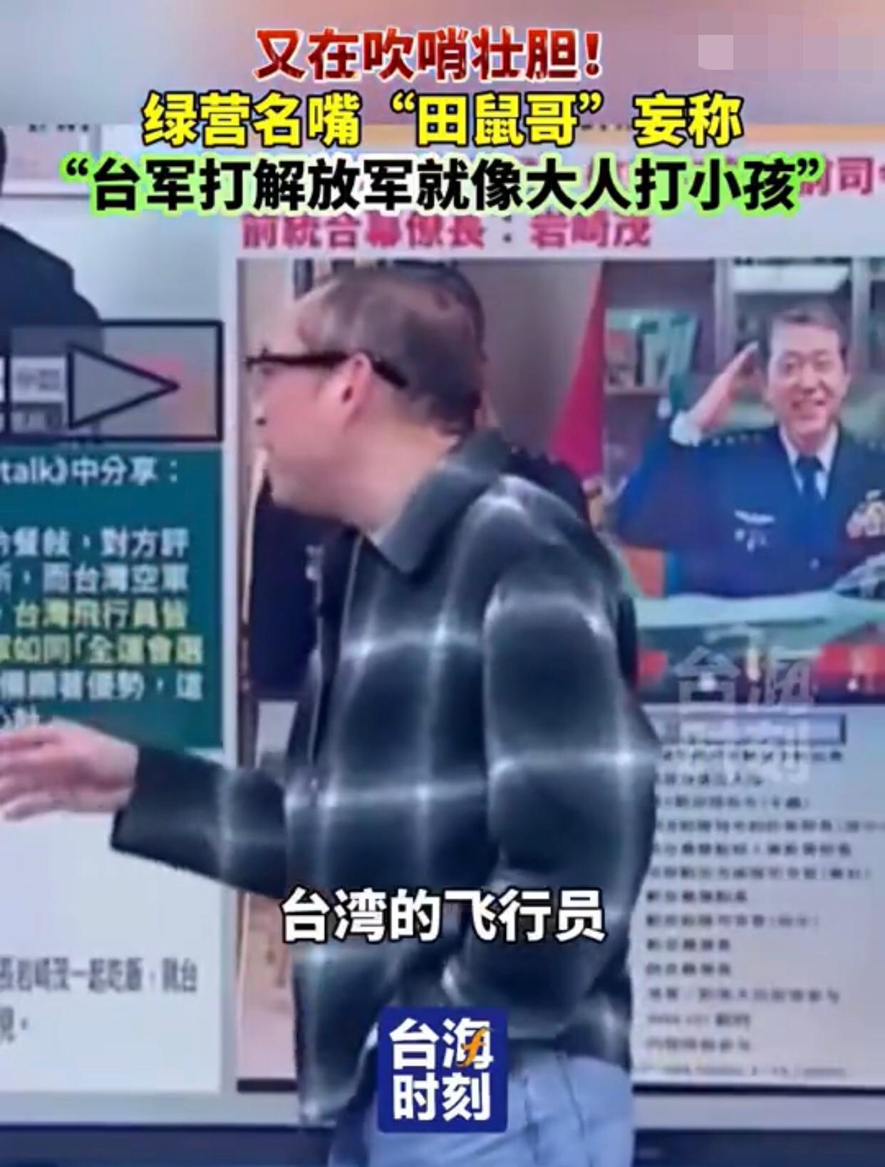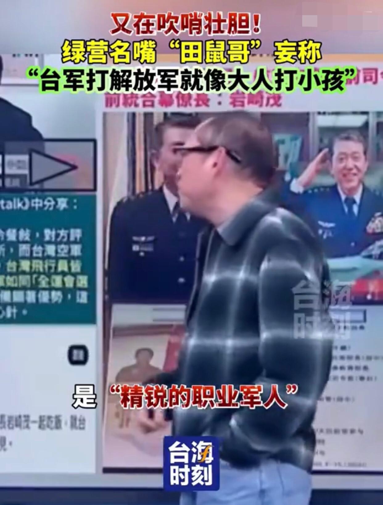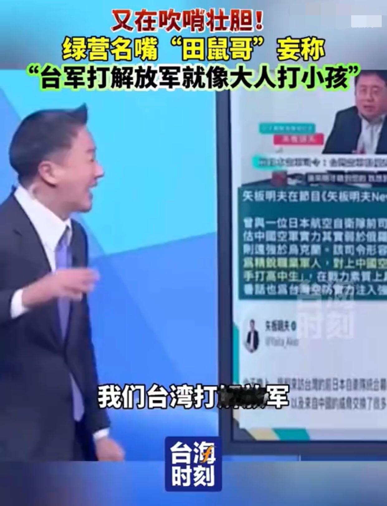 台湾‘田鼠哥’李正皓表示:“如果台湾的军人、尤其是空军,跟大陆解放军空军对抗时,在空中发生缠斗的话,就会像是‘大人打小孩一样‘,也就是说,‘台军打解放军就像大人打小孩‘,是‘拳击运动员跟高中生打架‘的逻辑。” 其他台湾岛内人附和道:“台湾的飞行员是‘精锐的职业军人’,因此,其实台湾的空军是具有‘显著优势’的。”