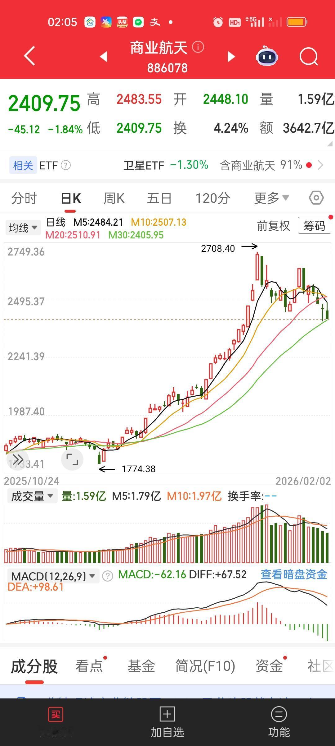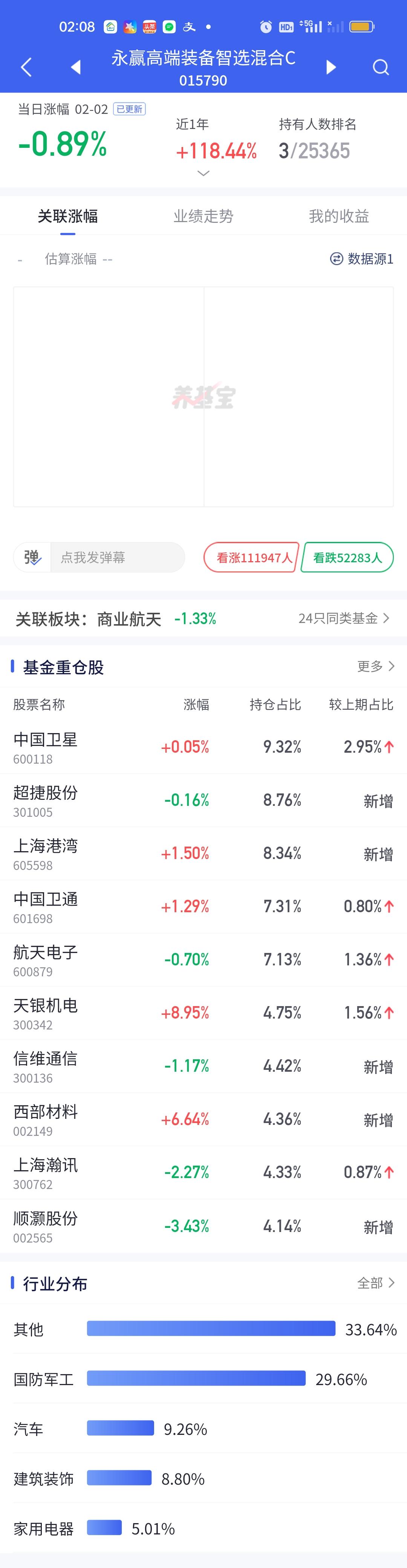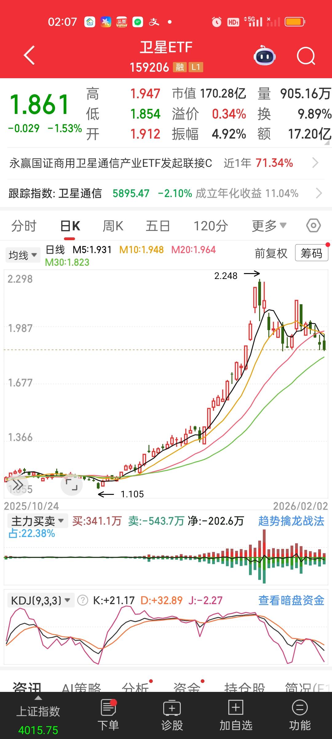 商业航天板块今天跌幅并不大,不管是板块指数还是卫星ETF。今天收盘也都收在了30日线上方,这个地方可以不要急着操作。等30日线稳住了再进场。今天永赢高端装备智选只是微跌了0.89%。