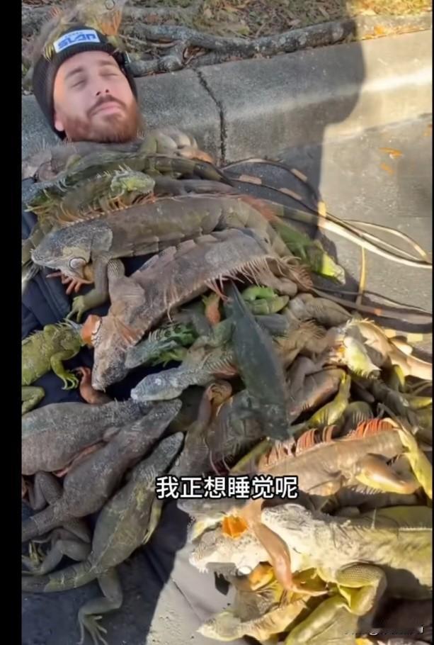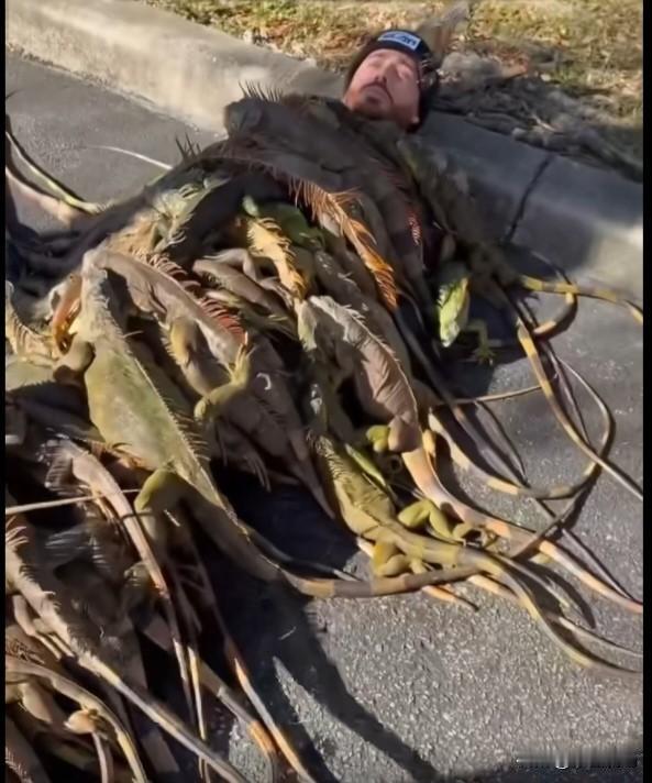 近日,美国佛罗里达州一名网红,全身盖满“冬眠”的蜥蜴睡在路边,并声称,这些动物都把自己捂热了,迅速在网络上走红。 2月1日,美国东南部地区迎来一场强劲的冬季风暴,在有“阳光之州”之称的佛罗里达州,“天降蜥蜴”奇观再现。由于气温骤降,这种依赖阳光调节体温的冷血动物因肌肉僵硬而纷纷从树上坠落。