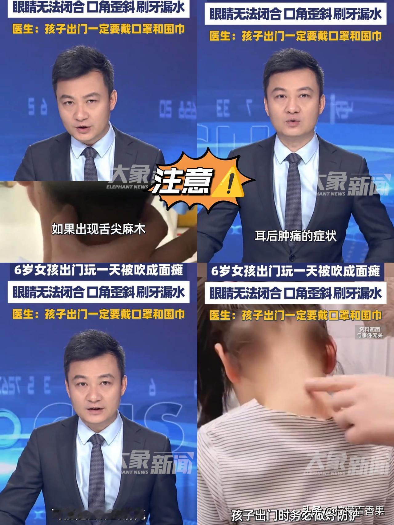 刷到这个新闻我真的被惊到了!一个6岁小姑娘,就因为在外面玩了一天吹了冷风,直接面瘫——眼睛闭不上、嘴巴歪了,连刷牙都漏水。 以前总觉得“面瘫是大人的病”,没想到孩子的面部神经这么脆弱,耳后那片区域更是软肋,冷风一吹就容易痉挛缺血。 真心给大伙提个醒,冬天天气寒冷带娃出门这几点一定要做到: ✅ 出门必须戴能遮脸颊和耳后的防风口罩,再拿围巾把脖子、下巴裹严实,别让冷风钻空子 ✅ 孩子跑出汗了先擦干、换干爽衣服,千万别顶着一身汗吹风,刺激贼大 ✅ 洗完头必须把耳后、脖子的头发彻底吹干,湿发出门真的超容易出问题 娃的身子娇,可别存侥幸心理!这些小细节看着不起眼,真能护娃少遭罪,千万别等出事了才后悔!