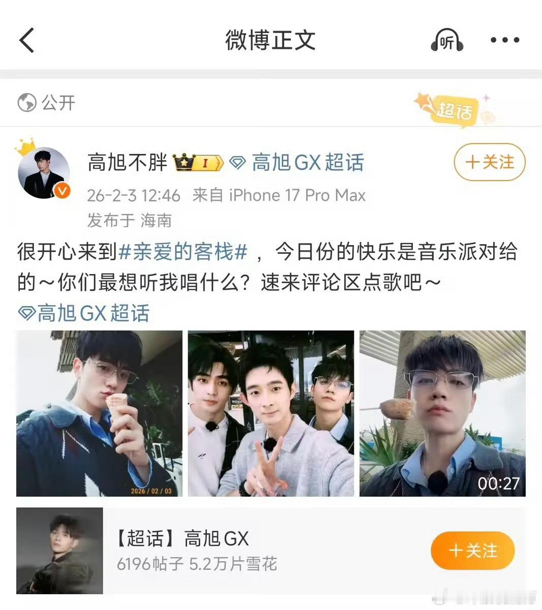 声鸣远扬全国三强亲爱的客栈路透《声鸣远扬2025》的三强选手危晋宇、张卓尔、高旭做客《亲爱的客栈2026》 啦!!已经想象到这期有多好“好听”了!亲爱的客栈