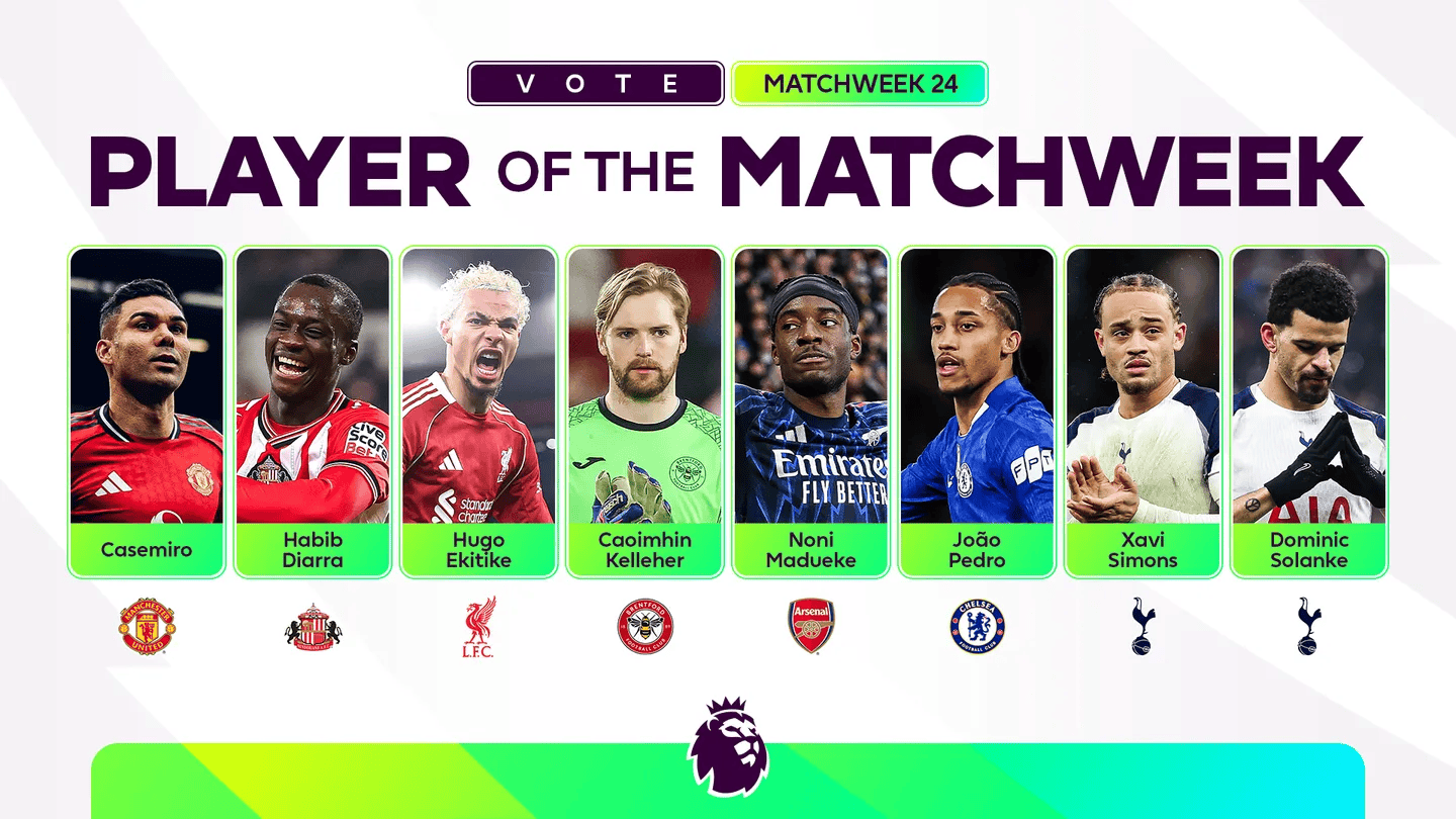 虎扑02月03日讯英超联赛官方公布第24轮最佳球员候选名单,卡塞米罗、埃基蒂克、若昂-佩德罗等8人入选。