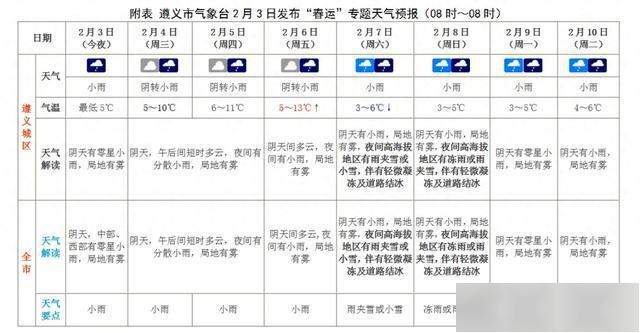 阴天有小雨,局地有雾,夜间高海拔地区有冻雨或雨夹雪,伴有轻微凝冻及道路结冰,城区气温:3~5℃