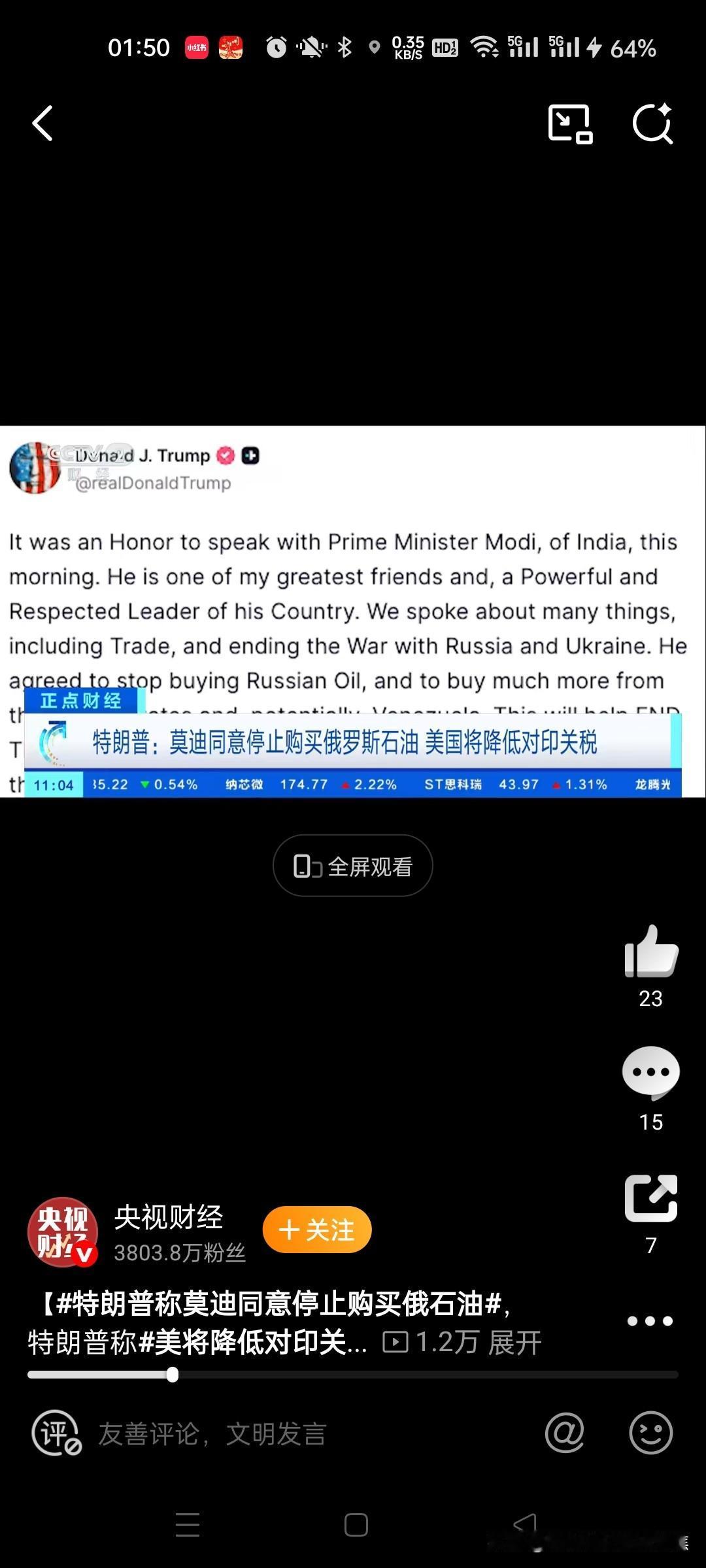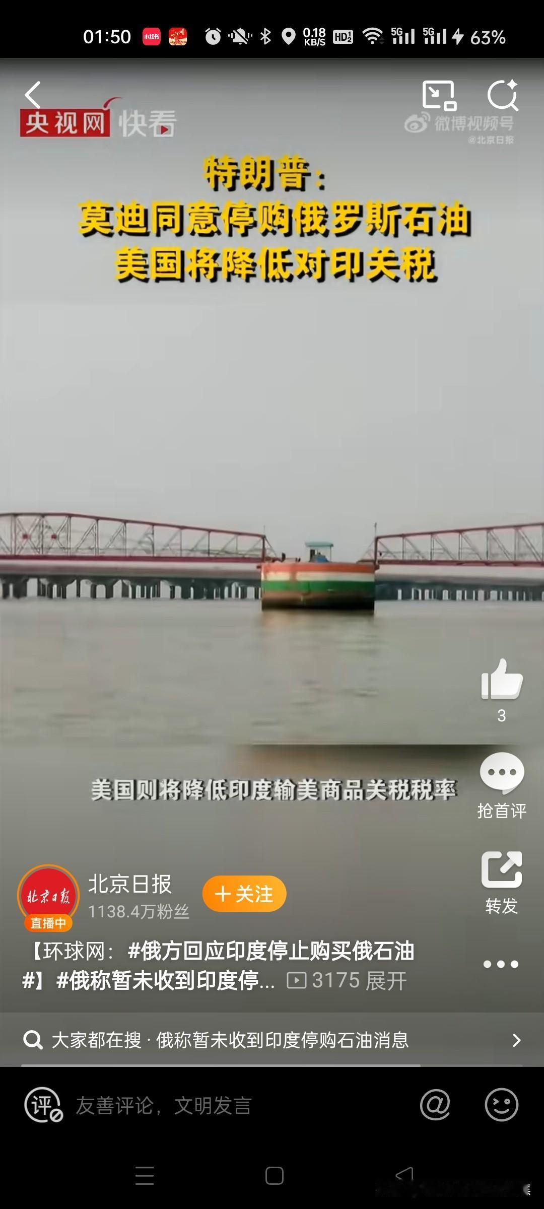 外交高手莫迪忽悠特朗普降关税?游走于大国之间的外交,这回忽悠了特朗普降低了关税!特朗普与莫迪闹了个大乌龙,话中暗藏玄机,戏里别有洞天。莫迪称自己只谈及降低关税和购买美国石油,并未提及不买俄罗斯石油。特朗普是被忽悠了吗? 特朗普宣称莫迪同意停止购买俄罗斯石油,并增加购买美国石油。 莫迪仅确认了美印贸易协议以及关税下调,并未公开承认停止购买俄罗斯石油。此前,印度方面一直强调以消费者利益和能源安全为导向,不会轻易停止购买俄罗斯石油。 俄方佩斯科夫表示,截至目前,俄方尚未收到来自印度方面关于拒绝购买俄罗斯石油的消息。另据俄新社报道,佩斯科夫称,俄方尊重美国与印度之间的关系,同时也重视俄罗斯与印度之间的战略伙伴关系。 2026年2月2日,特朗普称莫迪同意停止购买俄罗斯石油并增加购买美国石油,而莫迪仅确认了美印贸易协议与关税下调,并未公开承认停止购买俄罗斯石油。此前,印度方面一直强调以消费者利益和能源安全为导向,不会轻易停止购买俄罗斯石油。 关键信息 - 美方说法:特朗普称莫迪同意停购俄油,增购美油与委油,美国将对印度的“对等关税”由25%降至18%,并取消额外的25%关税。 - 莫迪表态:仅确认美印贸易协议与关税下调,感谢特朗普,只字未提停购俄油。 - 印方立场:此前多次强调能源进口以消费者利益、价格稳定、供应可靠为优先,追求能源来源多元化。 关于特朗普声称印度将停止购买俄罗斯石油这一表态,当前三方说法存在明显矛盾:特朗普高调宣布美印达成“石油换关税”协议,莫迪仅确认关税下调,对石油事宜只字未提,而俄罗斯直接表示未收到印度任何相关通知。 一、三方矛盾的表态 特朗普的声明 美国总统特朗普于2026年2月2日在社交媒体宣称,与印度总理莫迪通话后达成协议: 印度将停止购买俄罗斯石油,转而采购美国能源(包括可能从委内瑞拉进口);@环球时报220 美国将把对印度商品的关税从50%(含25%基础关税 + 25%惩罚性关税)降至18%,并立即生效;@看看新闻Kn...120 莫迪承诺采购超5000亿美元美国产品(含能源、农业、科技等),并降低对美贸易壁垒。@环球网6 莫迪的回避性回应 莫迪同日仅通过社交媒体确认美国同意将印度输美商品关税降至18%,称此举“令人欣喜”;但对停止购买俄罗斯石油、增加美国能源采购等内容完全未提及。印度政府至今未就石油议题发表正式声明。@北京日报422 俄罗斯的否认 克里姆林宫发言人佩斯科夫2月3日明确表示: 俄方未收到任何来自印度关于停止购买俄石油的官方通知;@CCTV国际...414 俄罗斯正“密切关注并分析”特朗普言论,同时强调重视与印度的战略伙伴关系。421央视财经北京日报 二、关键争议点与历史背景 关税调整已获双方确认:美印均承认关税从25%降至18%,并取消此前因印度采购俄石油追加的25%惩罚性关税。但特朗普所称“印度对美关税最终降至零”的说法未获印方证实。156 石油承诺的真实性存疑: 这并非特朗普首次宣称印度停购俄油。2025年10月,他曾称莫迪保证停止采购,但印度外交部当时仅回应“能源政策以消费者利益优先”,未承认承诺;@参考消息18 印度长期依赖俄罗斯低价石油,2025年俄原油占印进口总量约30%,短期替代可能性低。@观察者网17 美印谈判的深层矛盾:双方自2025年2月启动贸易谈判,因原油采购分歧多次停滞。美国此前多次以“惩罚关税”施压印度减少俄油进口。1620 三、国际反应与潜在影响 中方立场:中国外交部曾驳斥类似要求,强调与俄罗斯正常能源合作“正当合法”,反对美方单边霸凌。@长安街知事 市场观望:俄罗斯石油供应链暂未波动,但若印度未来减少采购,可能影响全球能源格局。1421 外交信誉风险:特朗普单方面宣布协议内容遭俄印“软性否认”,可能削弱其外交声明的可信度。422 特朗普能源战略 莫迪 印度买俄油 莫迪怒怼特朗普 印度俄油采购 印度俄油进口 印度石油采购