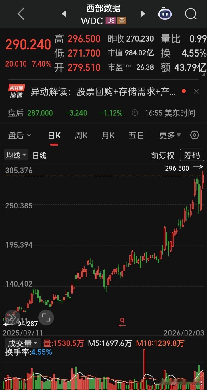 【2026.02.03】美三大指“滑梯式”下跌,收航齐跌,“金属铜、金属铀、消费电子、金属与采矿、电脑硬件储存”等板块概念涨幅在前,“英伟达”跌2.84%,“博通”跌3.26%,“礼来”跌3.99%,“思科”涨3.06%再创历史新高,“高通”跌3.56%,“美光科技”跌4.19%,“诺和诺德”跌14.59%,“闪迪”涨4.55%再创历史新高,“西部数据”涨7.40%再创历史新高,“脑再生科技”涨0.60%,“稳定币第一股ICircle”跌4.49%,“唐宁”涨2.18%,“Lumentum控股”涨2.76%,“AST SpaceMobile”(卫通通信技术)涨10.72%,“Rocket Lab”(太空发射服务)涨9.60%,“纳指金龙中国”跌0.94%,“阿里巴巴”跌2.83%,“36氟”跌4.29%,“小鹏汽车”涨4.03%,“海川证券”涨10.13%,三大美指,美元、离岸人民币、黄金、白银、原油涨跌幅表现 【道指】 收49240.99,跌0.34% 【纳指】 收23255.19,跌1.43% 【标普】 收6917.81, 跌0.84% 【美元指数】 目前报97.360, 跌0.27% 【离岸人民币】目前报6.93364,跌0.11% 【纽约金主连】目前报4976.9,涨6.97% 【纽约银主连】目前报85.315,涨10.79% 【美原油主连】目前报63.93, 涨2.88%