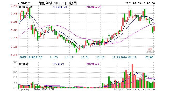 2月3日,智能驾驶ETF(516520)涨2.88%,成交额8566.91万元。当日份额增加600.00万份,最新份额为8.60亿份,近20个交易日份额增加2.72亿份。最新资产净值计算值为11.36亿元。