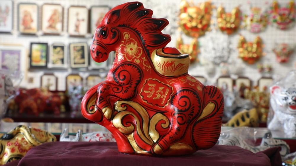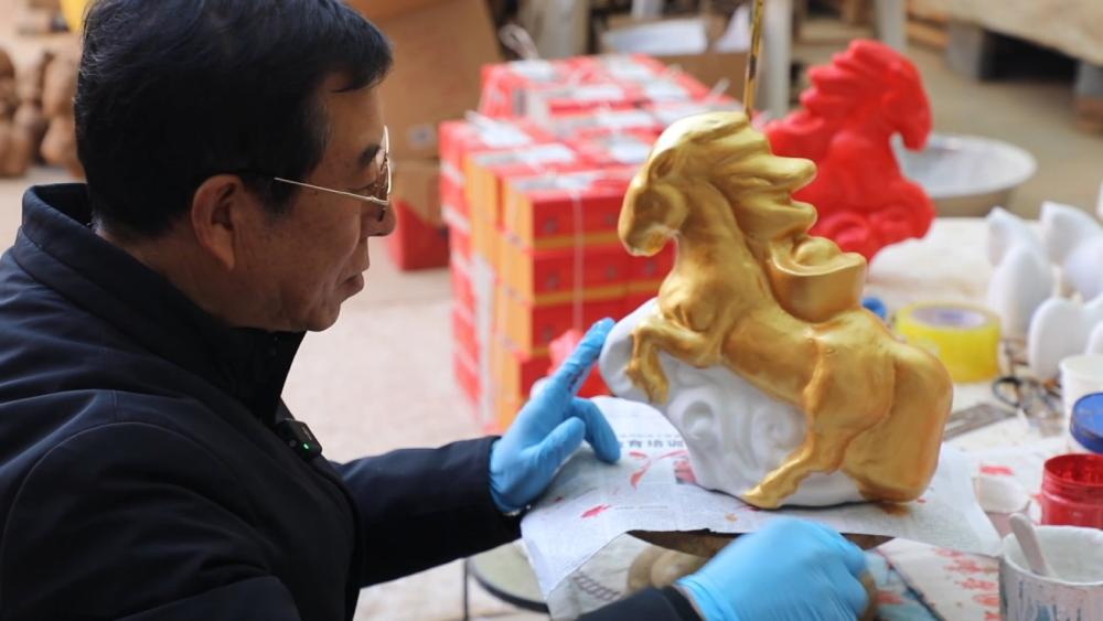 走进黄忠祥的工作室,一排排彩绘泥塑马整齐摆放,神态各异、栩栩如生。“马上驮金”、“策马扬鞭”、“马到成功”等系列泥塑马彩绘作品,让原本普通的泥土焕发出勃勃生机,寄托着人们对新年的美好期盼。