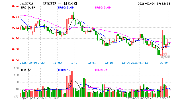 2月4日,食品饮料ETF天弘(159736)开盘跌0.14%,报0.691元。食品饮料ETF天弘(159736)重仓股方面,伊利股份开盘涨0.15%,贵州茅台涨0.68%,五粮液跌0.73%,泸州老窖跌0.64%,山西汾酒跌0.36%,海天味业涨0.00%,东鹏饮料跌1.13%,洋河股份跌0.45%,双汇发展涨0.08%,安琪酵母跌0.53%。