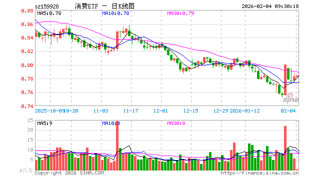 2月4日,消费ETF(159928)开盘跌0.13%,报0.782元。消费ETF(159928)重仓股方面,伊利股份开盘涨0.15%,贵州茅台涨0.68%,牧原股份涨0.15%,五粮液跌0.73%,温氏股份涨0.32%,泸州老窖跌0.64%,山西汾酒跌0.36%,海天味业涨0.00%,东鹏饮料跌1.13%,海大集团涨0.23%。