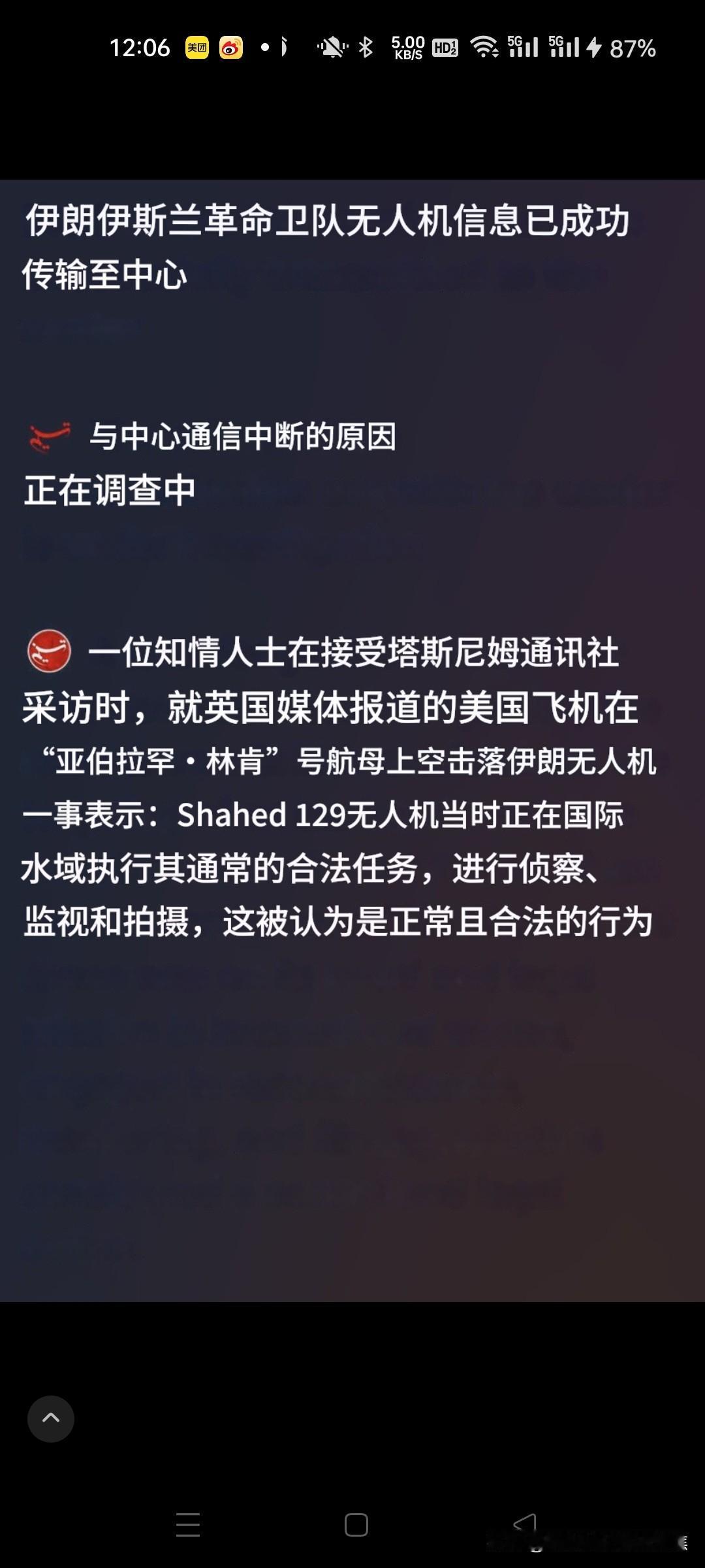 伊朗宣称无人机失联,失联前其曾传回图片,这可视为对美国的警告,意味着伊朗已获取美国航母的情报。 那么,伊朗真有胆量炸沉美军航母吗?特别关注热点聚焦分析,伊朗既没有这个胆,也没有这个实力。这个王朝距离改朝换代已经不远了。 伊朗官方证实,一架于阿拉伯海执行“常规合法侦察”任务的无人机,在失联前已传回拍摄图像。而美军声明称,该无人机因“挑衅性逼近”林肯号航母,被F - 35C战机击落。双方对这一事件的性质各执一词。@央视新闻34 -- 二师兄 -- 二师兄 -- 二师兄包容万物恒河水参考消息深海猎人Enterprise - CVN80央视新闻包容万物恒河水新浪军事乐天凌 一、事件核心冲突:侦察合法性与军事行动的博弈 双方对立主张 伊朗立场:据塔斯尼姆通讯社援引军方消息,失联的是Shahed - 129型无人机,当时在公海执行常规侦察任务,成功传回包含美军航母的影像后失联。伊方暗示美军行动违反国际法。@参考消息127 美军声明:中央司令部指控一架Shahed - 139无人机无视警告,以“威胁性姿态”逼近林肯号航母打击群(距伊朗海岸约800公里),F - 35C出于“自卫”将其击落,强调行动“适当”且未造成美方损失。@中国新闻网16 技术细节争议 双方对无人机型号的表述存在差异(美军称139型,伊朗称129型),分析认为这可能源于情报混淆或命名差异。值得留意的是,事件发生后,伊朗再次派遣同型号无人机,使用原识别码抵近侦察,试图测试美军防御漏洞。@包容万物恒河...78牧星观海天包容万物恒河水中国新闻网包容万物恒河水 二、战略意图与战术验证 伊朗的双重目标 非对称能力展示:通过长航时无人机(Shahed - 129续航24小时)传回航母图像,验证其对高价值目标的实时监控能力,为反舰导弹提供潜在引导支持。21 谈判筹码积累:事件发生于美伊计划当周举行的核协议谈判前夕,伊朗同步派快艇逼近美国油轮,形成多线施压。@地球镜头A21 美军的威慑逻辑 选择击落而非干扰,既展示F - 35C首次实战击杀能力,更明确划出武力反击红线。白宫同步表态“谈判照常”,凸显军事行动与外交并行的策略。@ -- 二师兄15 三、地区风险与连锁反应 冲突升级隐患 伊朗近期列装千架新型无人机并演练“蜂群战术”,美军则增派反导系统及电子战机,双方防御与突破能力同步升级。 霍尔木兹海峡油轮对峙事件紧随无人机击落发生,误判风险骤增。21 经济与市场波动 事件引发避险资产上涨,黄金单日涨幅约1%(部分夸大表述被修正)。若海峡航运受阻,全球26%海运石油运输或中断,冲击中国45%石油进口。 四、舆论分歧与深层启示 认知对立焦点 “战术胜利论”:认为伊朗通过图像获取航母坐标、舰载机配置等关键情报,美军拦截反暴露防御机制。@蜗牛柯基25 “正当防卫论”:支持美军保护航母主权权利,强调无人机逼近构成实质威胁。613 现代冲突新形态 无人机成为“灰色地带”博弈的理想工具:伊朗以低成本消耗美军资源(百万级无人机vs.上亿美元战机),美军则面临反制经济性困境。双方“边打边谈”模式实为测量战略底线的危险游戏,其核心输赢将体现于谈判桌上的筹码转化。212830 当前态势:尽管摩擦不断,美伊仍保持外交渠道畅通。伊朗要求核谈判改为双边形式,美国则持续增兵中东(如布什号航母驶向中东),局势处于“斗而不破”的敏感平衡。@万年炎帝32万年炎帝