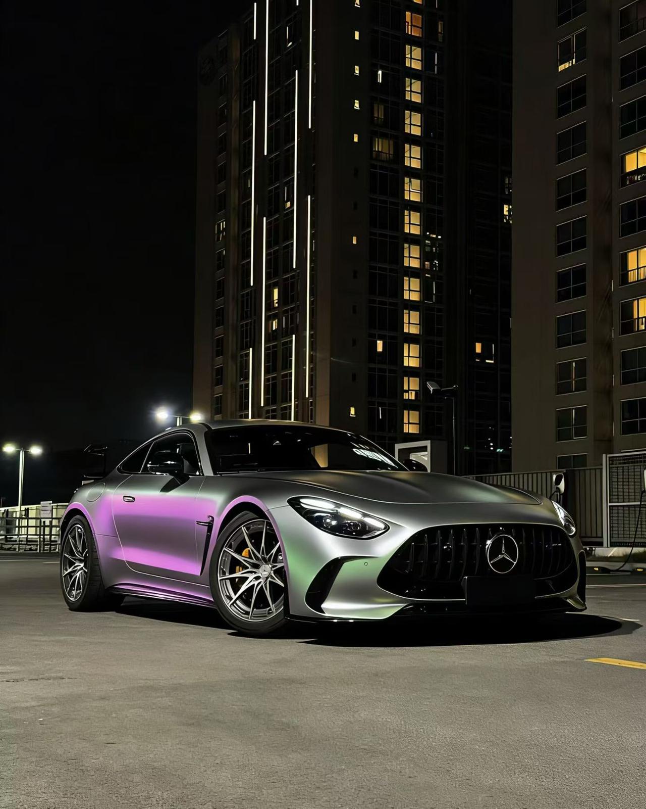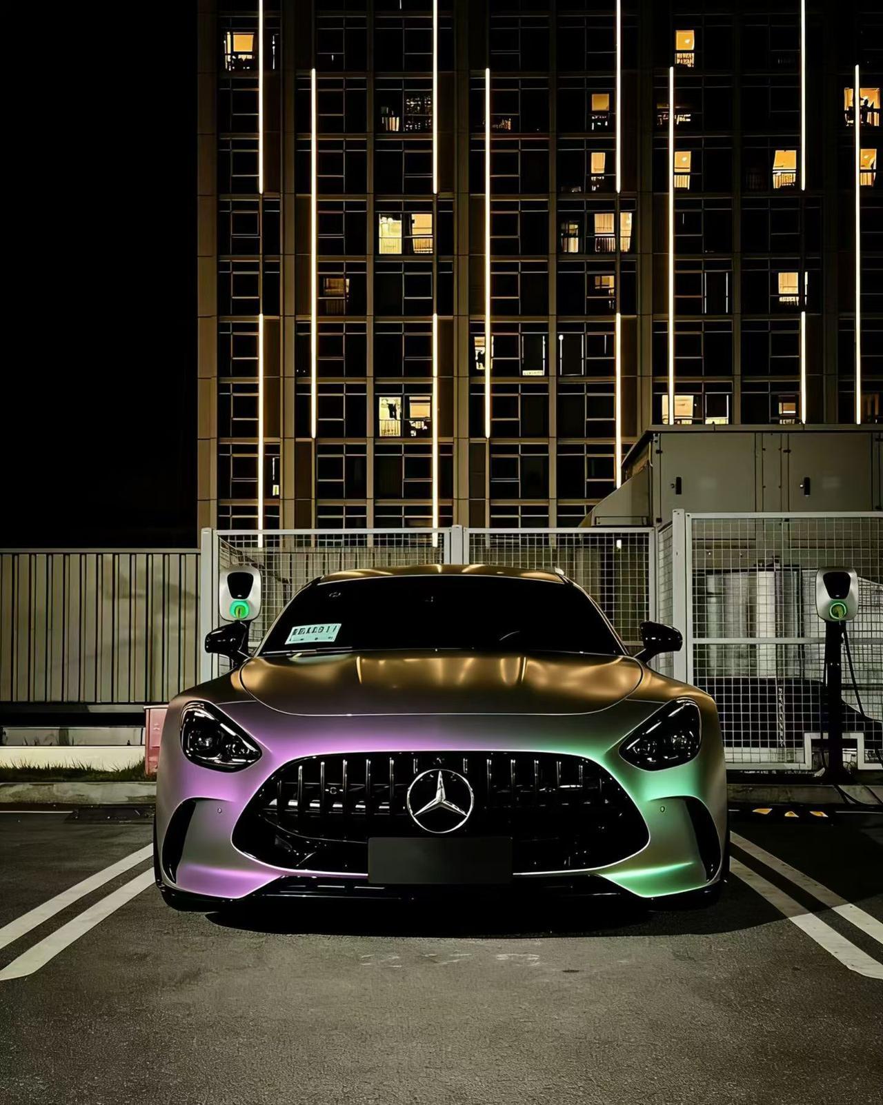 哑光的底色上,紫与绿的光泽在车身流转,随着路灯的明暗轻轻变幻,像城市霓虹揉碎后镀在了车身上。 此时安静地伏在路面,轮毂的金属冷光与车身的柔色形成奇妙的呼应。从另一个维度闯入的存在,既融入夜色,又带着疏离的锋芒。 仿佛能触到那层细腻的膜,不刺眼,却足够吸睛。 它不是张扬的炫耀,而是低调的惊艳,像城市里那些藏在烟火里的梦,冷冽又温柔。 提到广州,你会想到什么?